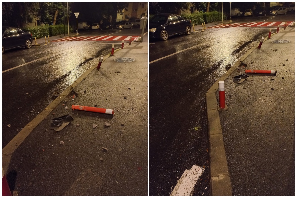 În urmă cu câteva zile un șofer din București a distrus mai mulți stâlpișori montați pe strada Între Lacuri după care a plecat liniștit.
