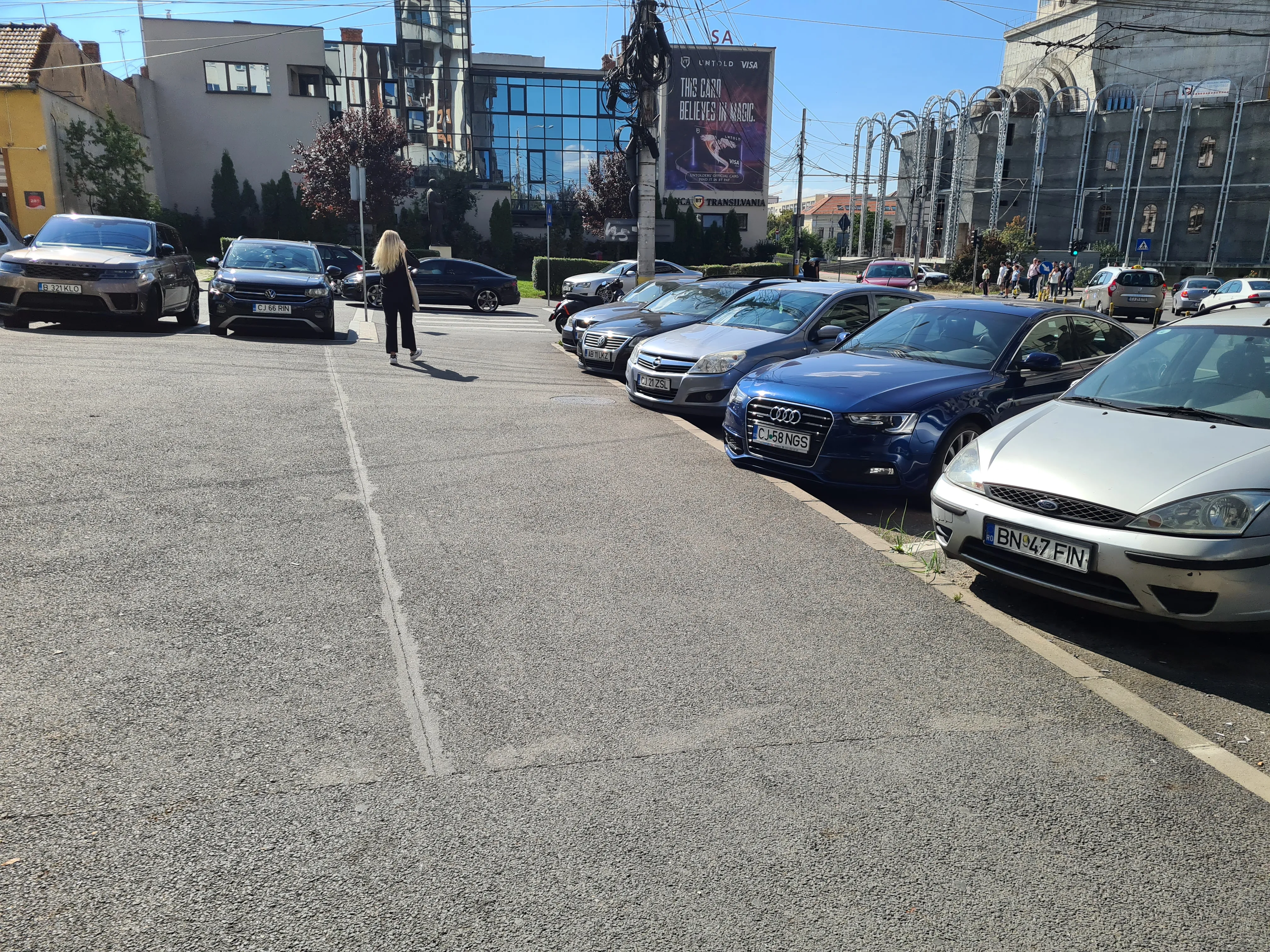 Un clujean cu spirit civic a surprins în Piața Cipariu un șofer cu o mașină cu numere de Anglia, care a uitat de regulile de circulație.Acesta a trecut peste jaloanele din plastic care despart sensurile și s-a postat cu mașina pe trotuar.