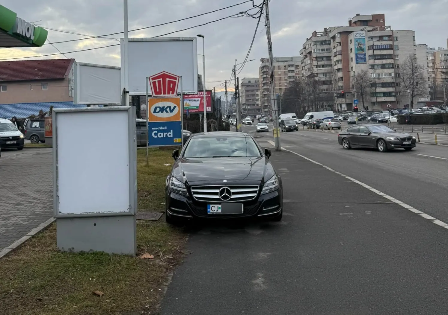 Un șofer de Mercedes și-a ,,trântit” mașina pe un trotuar de pe o stradă din Cluj: ,,Mai nou preluăm obiceiurile Bucureștiului”
