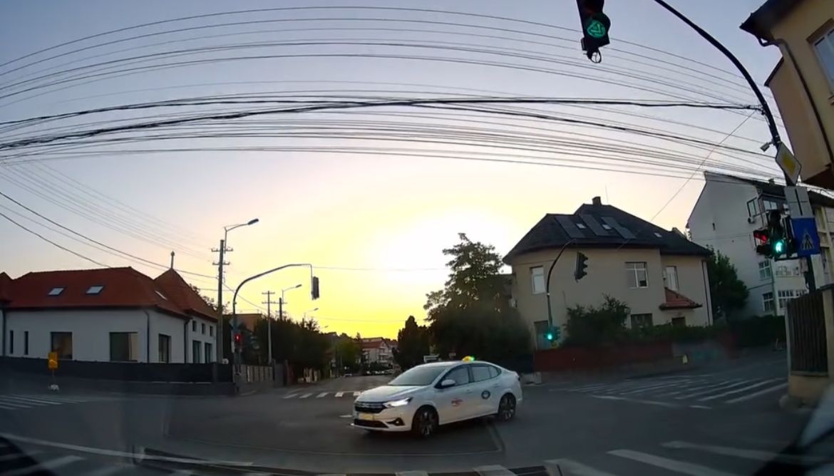 Un taximetrist din Cluj a trecut cu viteză peste semaforul roșu, intrând în intersecție fără niciun fel de precauție