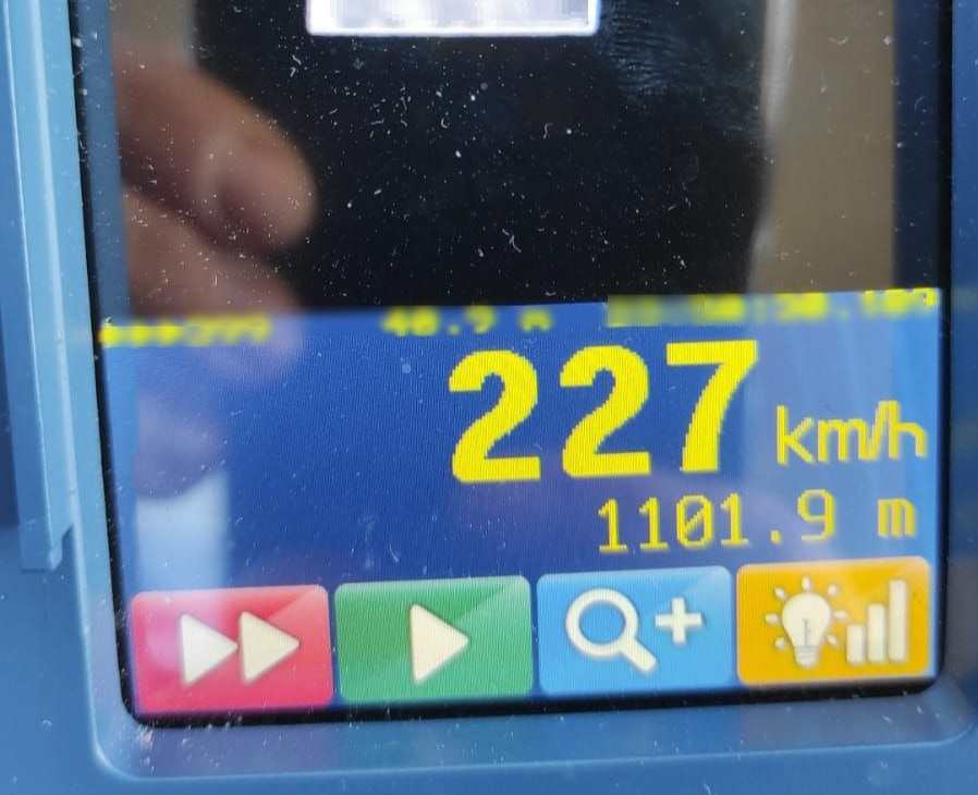 „La data de 2 august a.c., în jurul orei 23.50, în contextul acțiunilor derulate pentru combaterea nerespectării regimului legal de viteză, polițiștii din cadrul Biroului de Politia Autostrada A3 Turda-Borș au sancționat contravențional un conducător auto, de 23 de ani, din județul Bacău, care a fost suprins cu aparatul radar rulând cu autoturismul cu viteza de 227 km/h.
