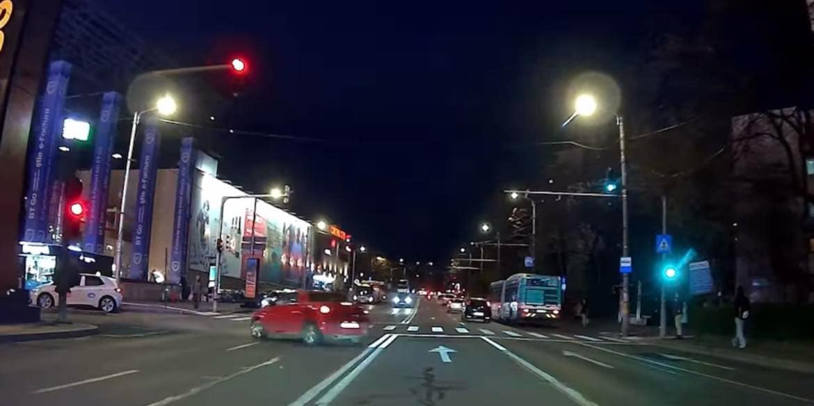 O cameră de bord a surprins un autoturism care a încălcat regulile de circulație, continuându-și drumul fără a respecta semnalele de trafic.