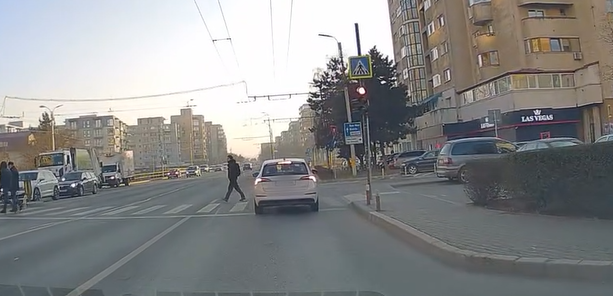 Un șofer din Cluj cu ,,probleme de vedere” a încurcat culorile semaforului! A trecut pe roșu, deși pietonii erau încă pe trecere - VIDEO