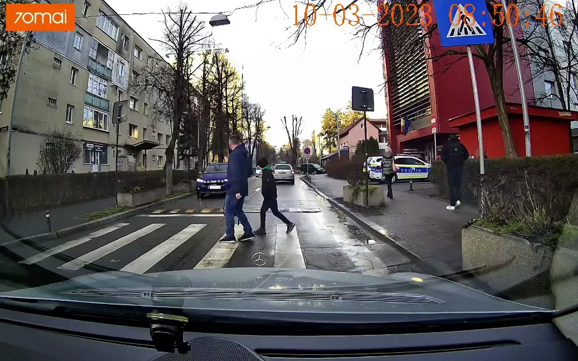 Un șofer de-a dreptul inconștient a fost la un pas de a lovit un copil și pe tatăl acestuia, pe trecerea de pietoni din fața sediului Poliției Rutiere Cluj, de pe strada Albac.