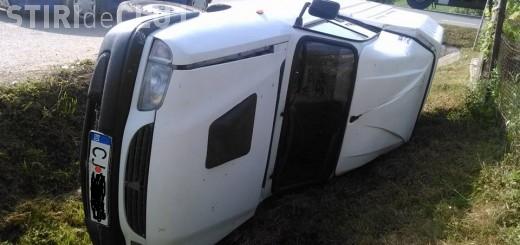Un șofer s-a răsturnat cu mașina la Cuzdrioara. A plecat apoi pe jos acasă FOTO