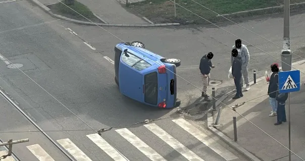 Un șofer s-a răsturnat cu mașina pe Bulevardul Muncii! Ar fi încercat să evite un pieton care traversa neregulamentar