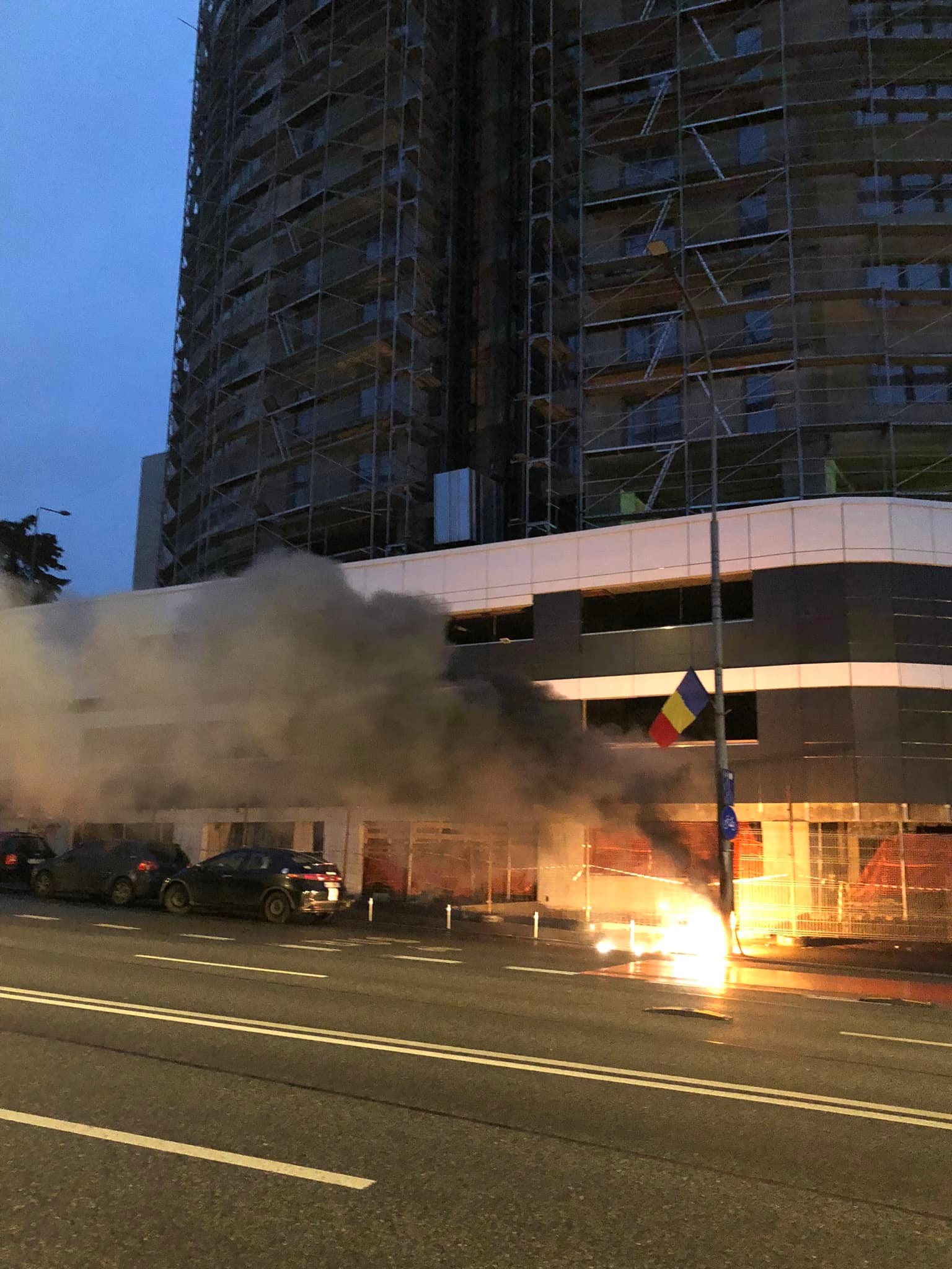 Un stâlp a luat foc pe Calea Florești, lângă cel mai înalt bloc din Cluj-Napoca - VIDEO și FOTO
