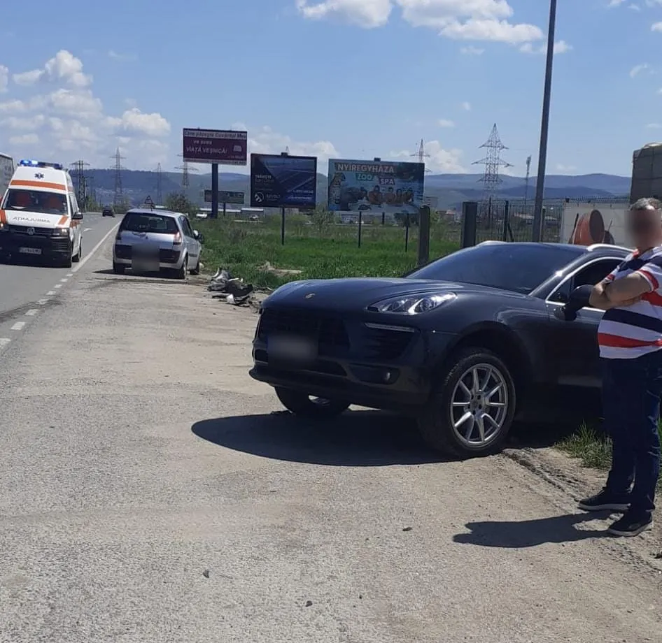 Un SUV Porsche a fost avariat în urma unui accident lângă Gilău - FOTO