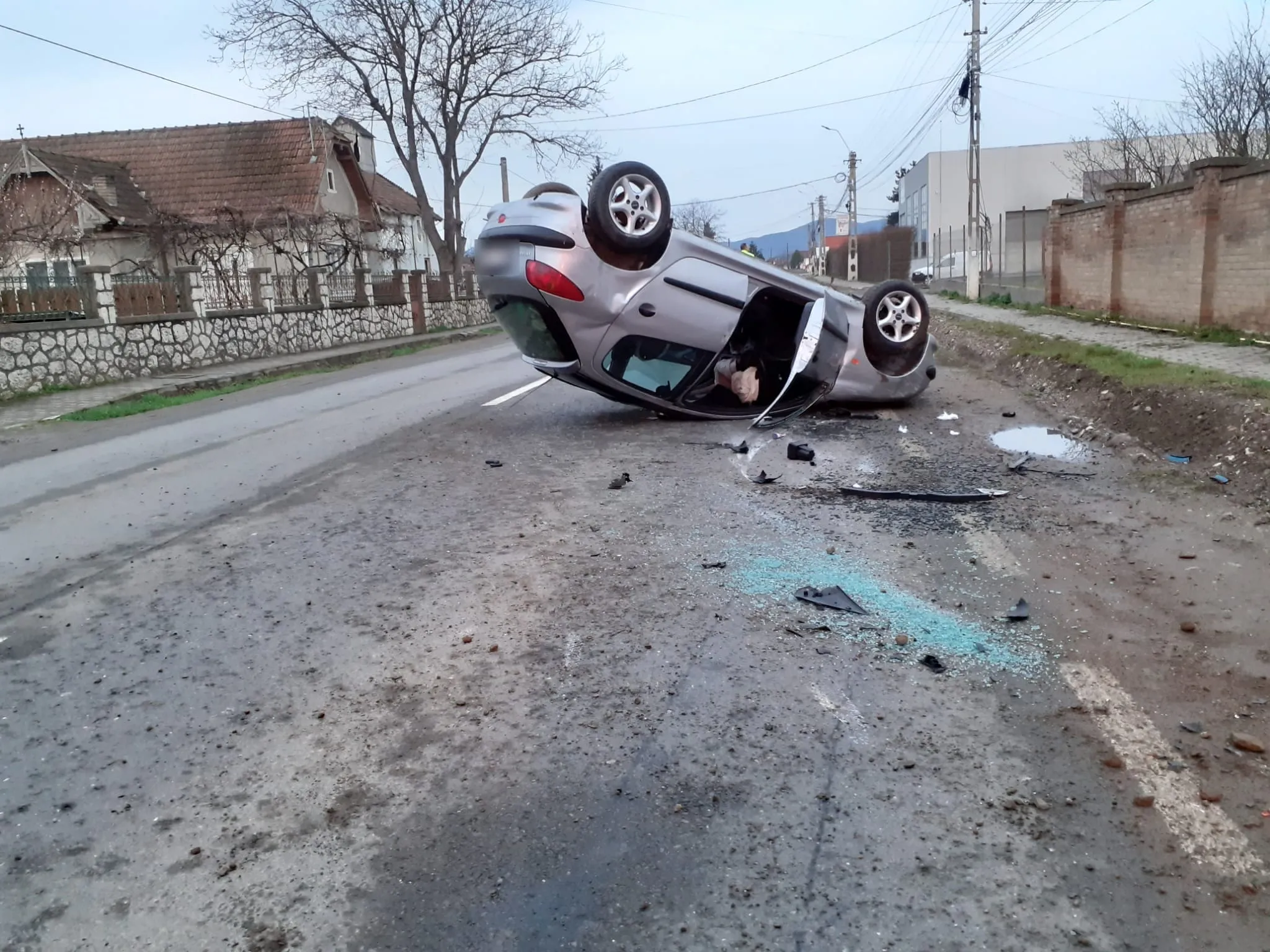 Un șofer de 20 de ani s-a răsturnat cu mașina, duminică dimineața, în comuna Mihai Viteazu.