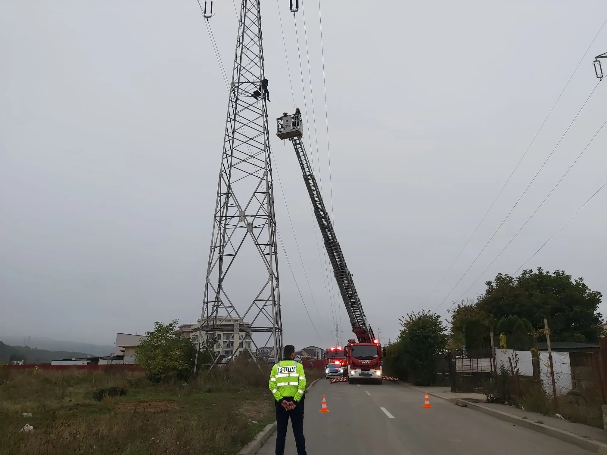 Astfel, au fost demarate acțiuni în colaborare cu polițiștii din cadrul Serviciul de Acțiuni Speciale al IPJ Cluj și cu specialiști ai distribuitorului de energie electrică pentru sistarea alimentării cu energie electrică pe liniile de pe stâlp și pentru a purta negocieri cu bărbatul de cca 30 de ani, care se afla la o înălțime de cca 10m față de sol.