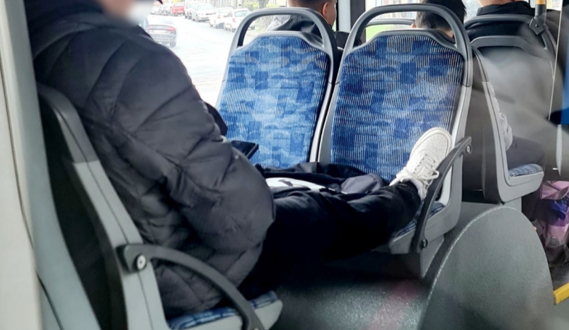 Un tânăr a fost surprins în timp ce se relaxa, cu picioarele complet întinse pe un scaun, în autobuzul M11, care circulă pe ruta Cluj-Napoca - Feleacu.