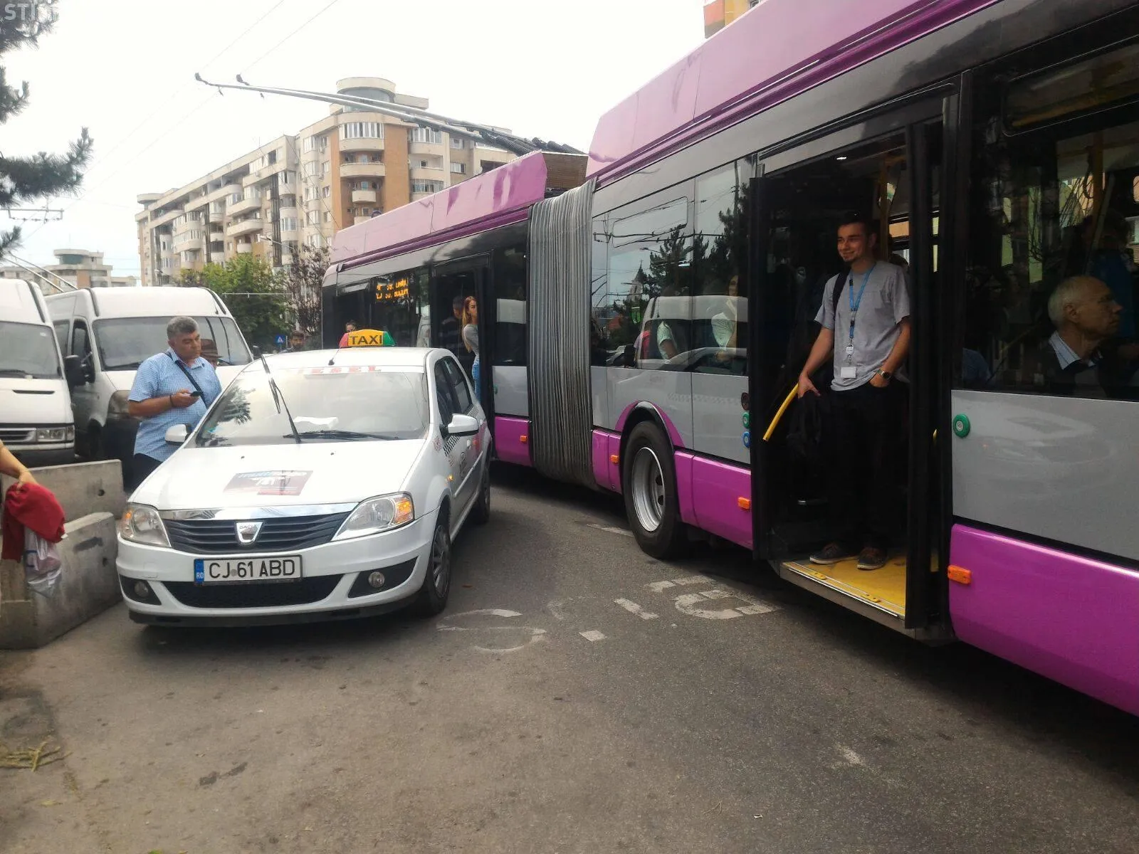 Un taximetru parcat în stația de autobuz din Piața Mărăști a reușit să blocheze tot traficul mijloacelor de transport în comun.