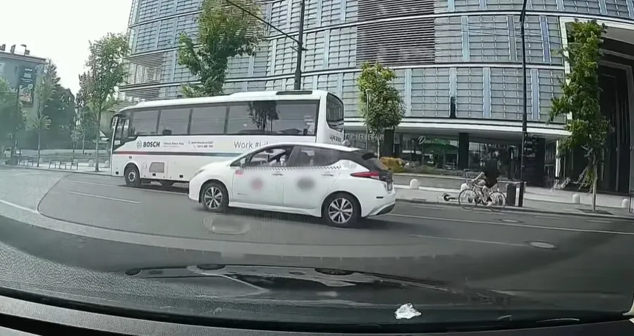 „Taxi a trecut pe roșu și autocarul folosește ilegal banda de BUS…. Doi profesioniști”, a precizat un internaut.
