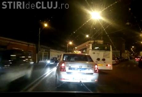 Un clujean a surprins o nouă mostră de nesimțire în trafic. Doi șoferi, un taximatrist și un conducător auto de la RATUC, blochează o intersecție, arătându-și mușchii.