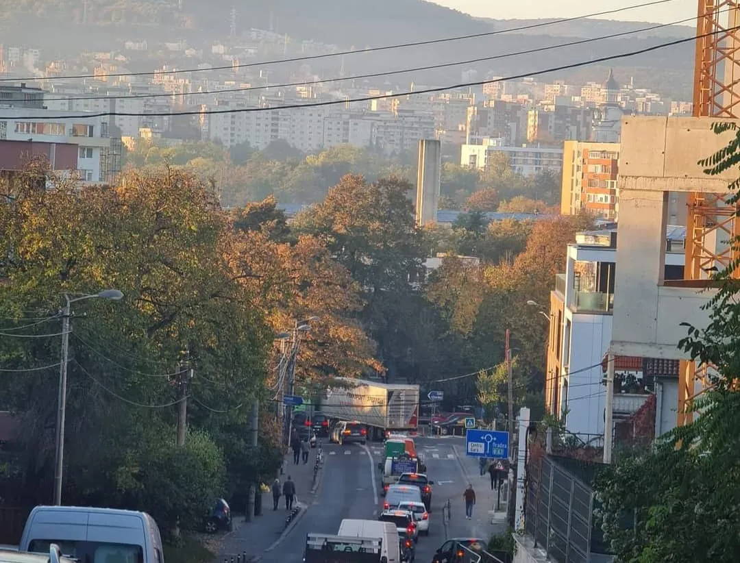 Trafic infernal pe Tăietura Turcului, luni dimineață, după ce un TIR a rămas blocat în sens, la intersecția cu strada G-ral Eremia Grigorescu.