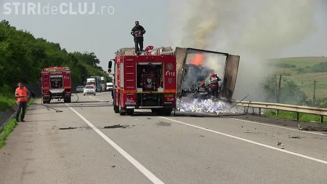 Un camion care transporta hârtie a luat foc pe centura orașului Gherla.