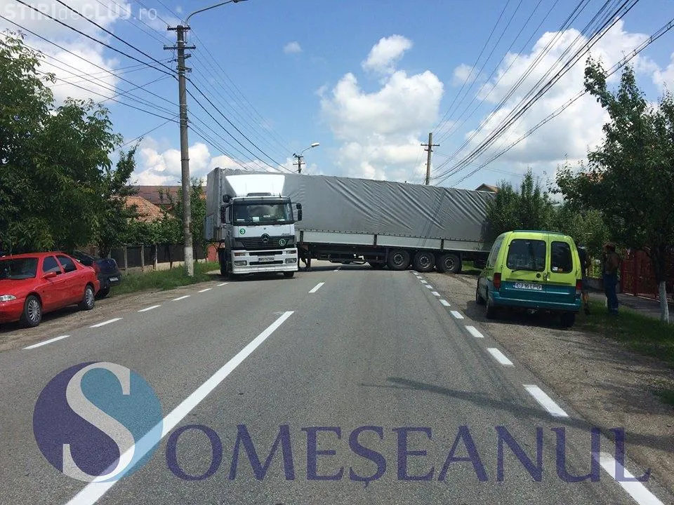 Criculația pe o stradă din Gherla a fost paralizată din cauza unui TIR blocat în urma unei manevre de întoarcere nereușite.