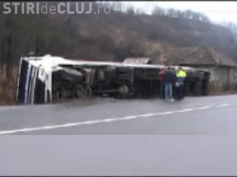 Un TIR incarcat cu chestestea s-a rasturnat la intrare in Dej - VIDEO