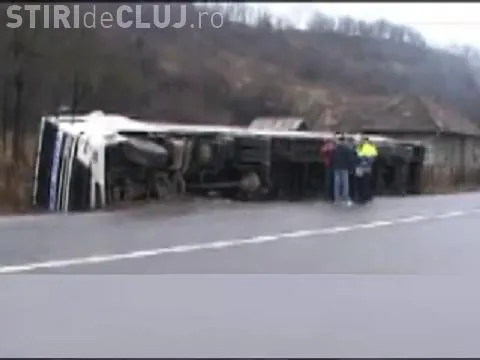 Un TIR s-a rasturnat, sambata, 15 ianuarie, in jurul orei 11.00, la intrare in Dej, pe strada Bistritei.