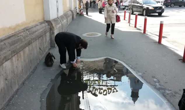 Un trotuar din Cluj-Napoca se transformă în „piscină” la fiecare ploaie! Clujenii așteaptă de 3 ani o minune, dar nu apare: „Nu s-a remediat problema”