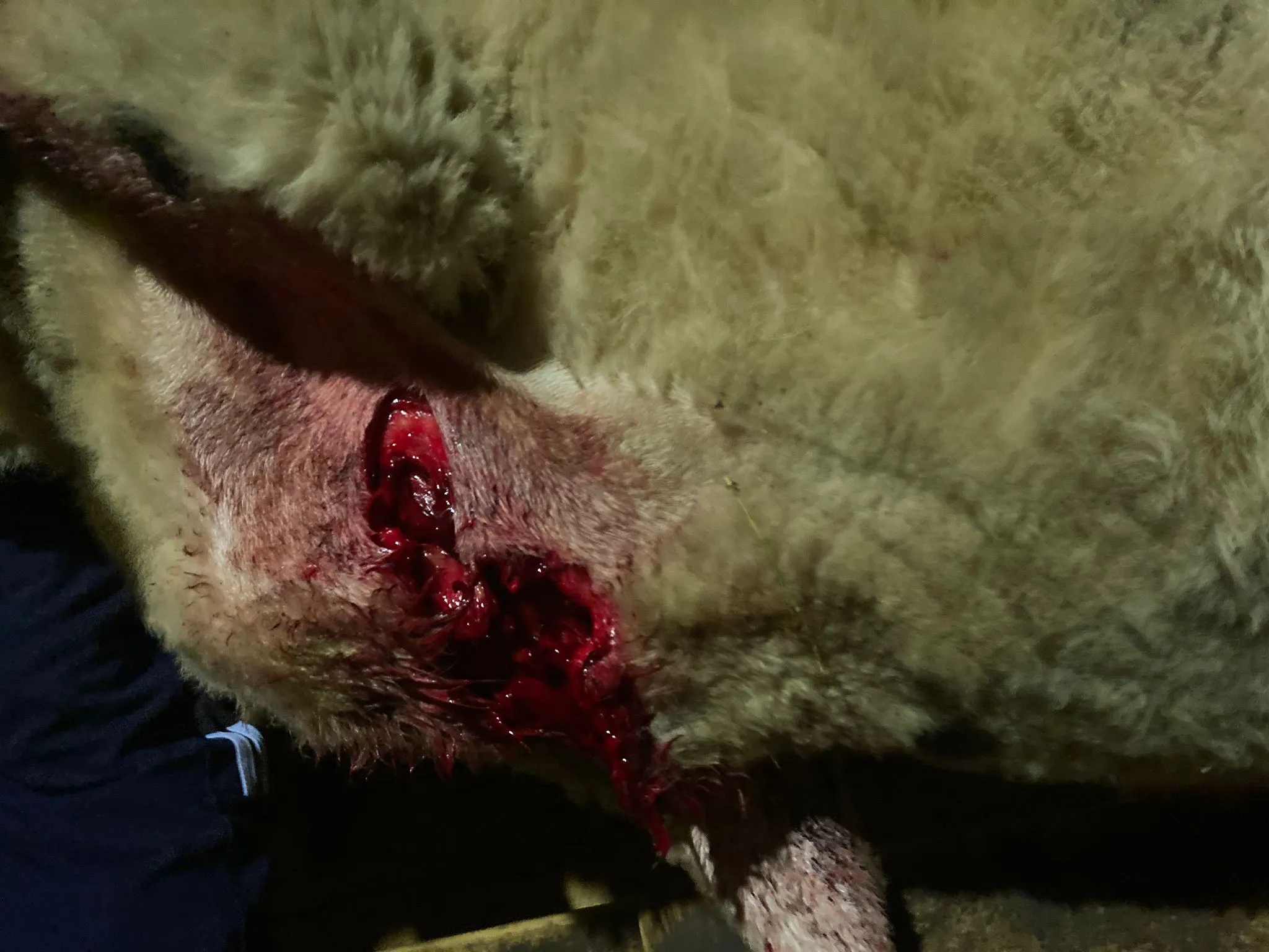 ”Am 12 oi de rasă și le cresc acasă. Pe la 1.00 a venit ursul, s-a băgat în ocol și a prins o oaie și a rănit-o grav.