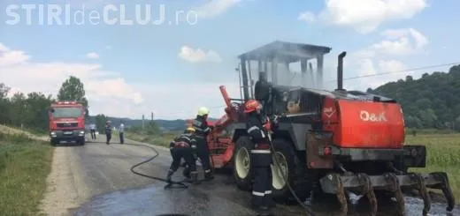 Un utilaj care efectua lucrări de reabilitare la drumul care face legătura între Dej și Bobâlna a luat foc pe raza localității Somcutul Mic.