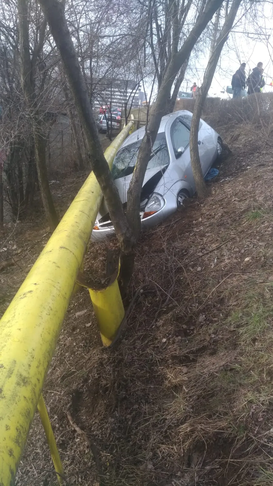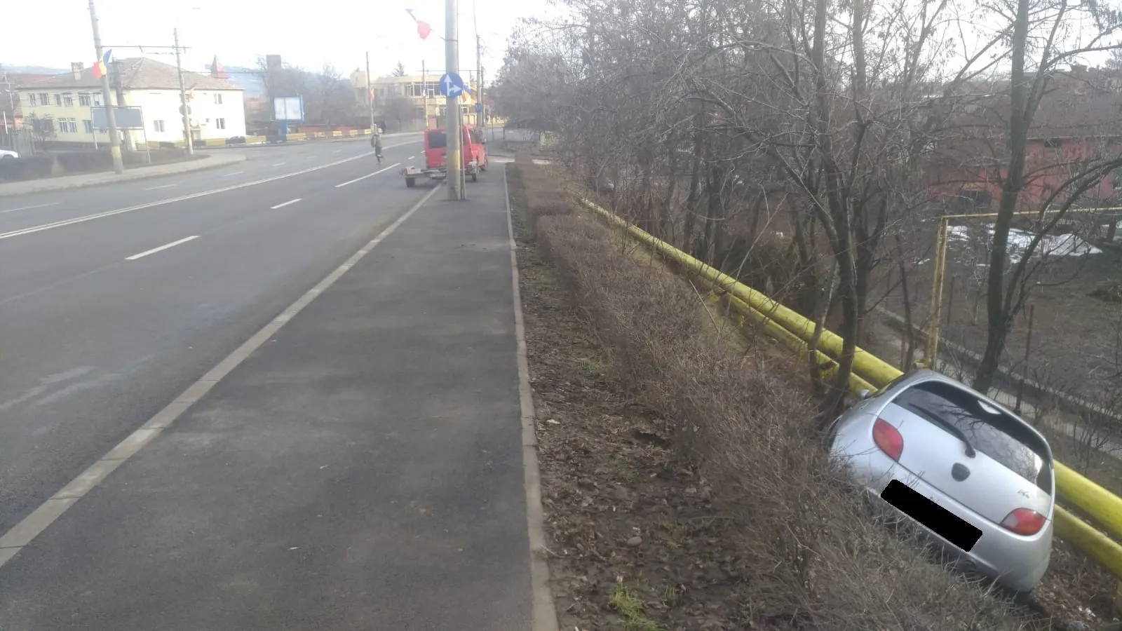 Evenimentul rutier s-a soldat numai cu pagube materiale. Șoferul de 21 de ani a călcat prea tare pedala de accelerație, a pierdut controlul asupra direcției de deplasare și a părăsit drumul, lovind o magistrală de gaz de pe margine.