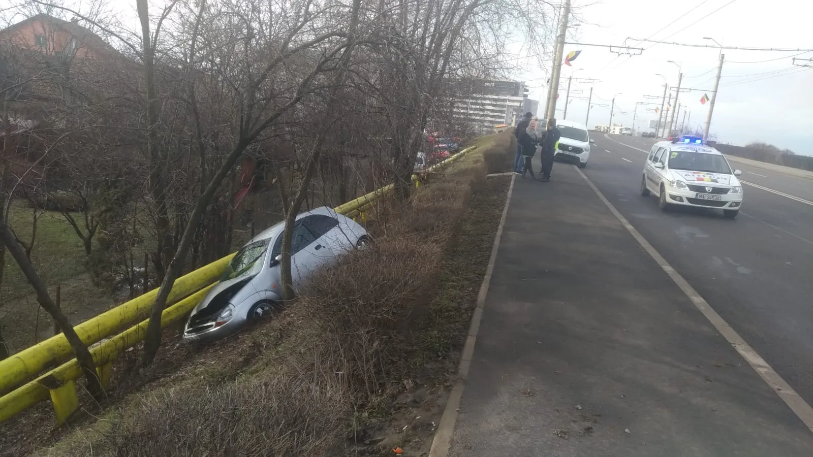 Un șofer care a uitat să adapteze viteza la condițiile de drum a ieșit de pe carosabil, la Podul IRA, duminică dimineața, în jurul orei 8:40.