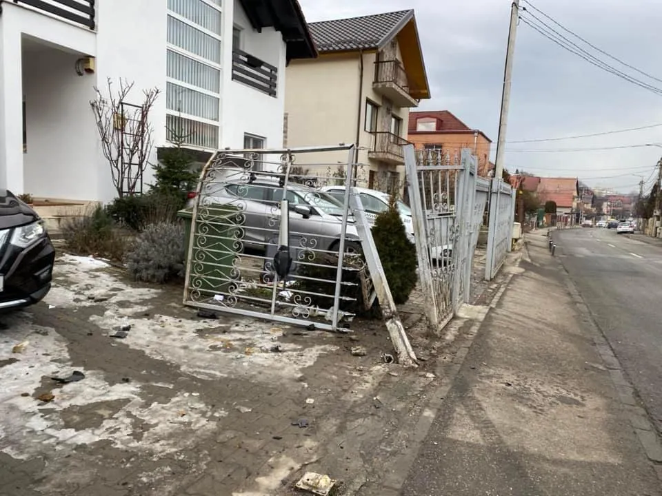 O șofer care circula cu viteză mare a lovit un gard, pe strada Câmpului, din Cluj-Napoca. Accidentul s-a produs azi noapte.