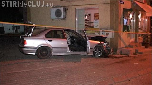 Un vitezoman din Dej și-a făcut praf BMW-ul. A lovit un chioșc de ziare și apoi un zid - VIDEO