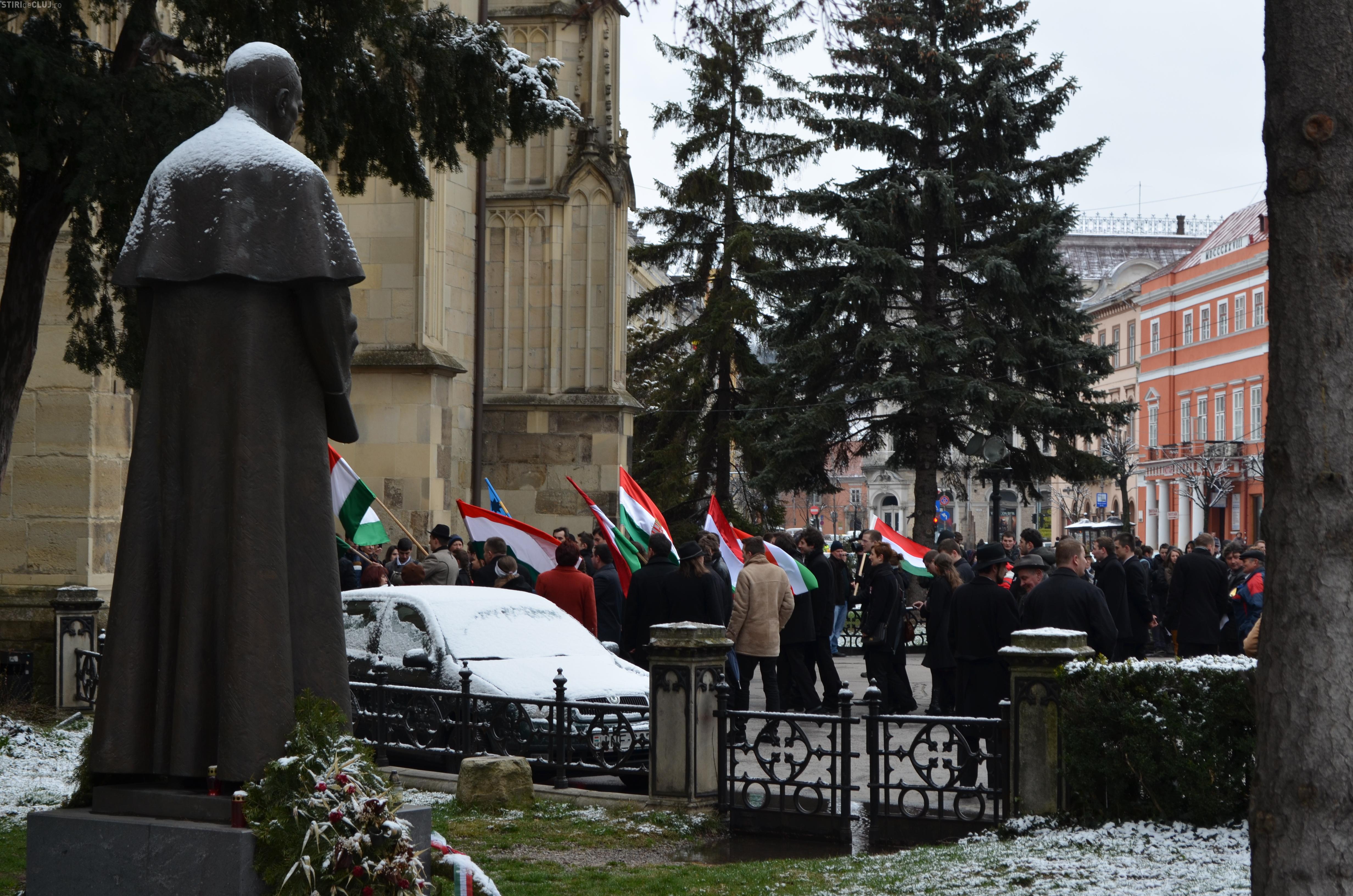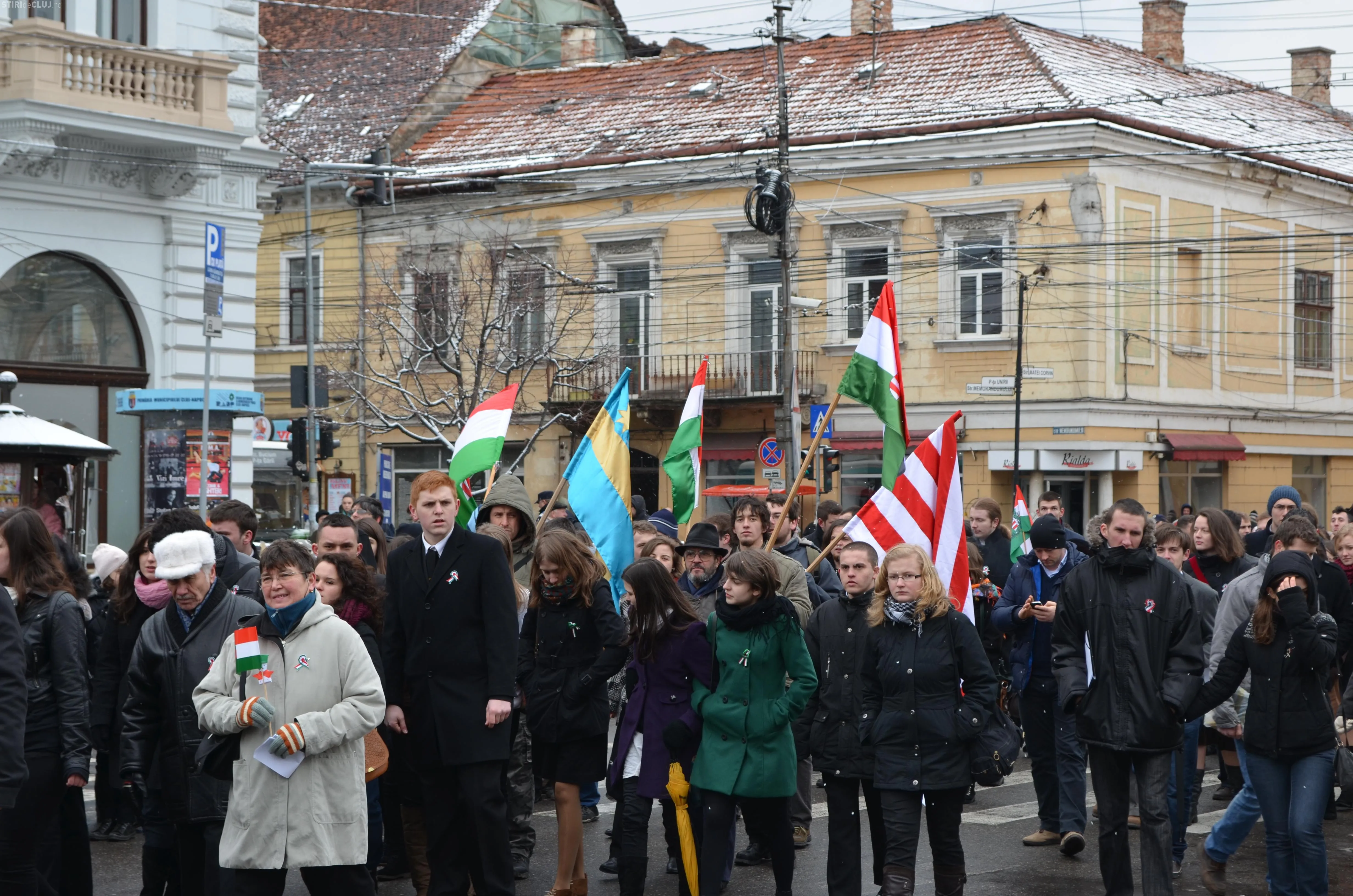 Maghiarii au fluturat steagurile Ungariei și ale Ținutului Secuiesc. La Biserica ”Sfântul Mihail” are loc o slujbă ecumenică, iar de la ora 13.00, pe strada Avram Iancu, vor fi depuse coroane și jerbe de flori la placa comemorativă a poetului Petofi Sandor.