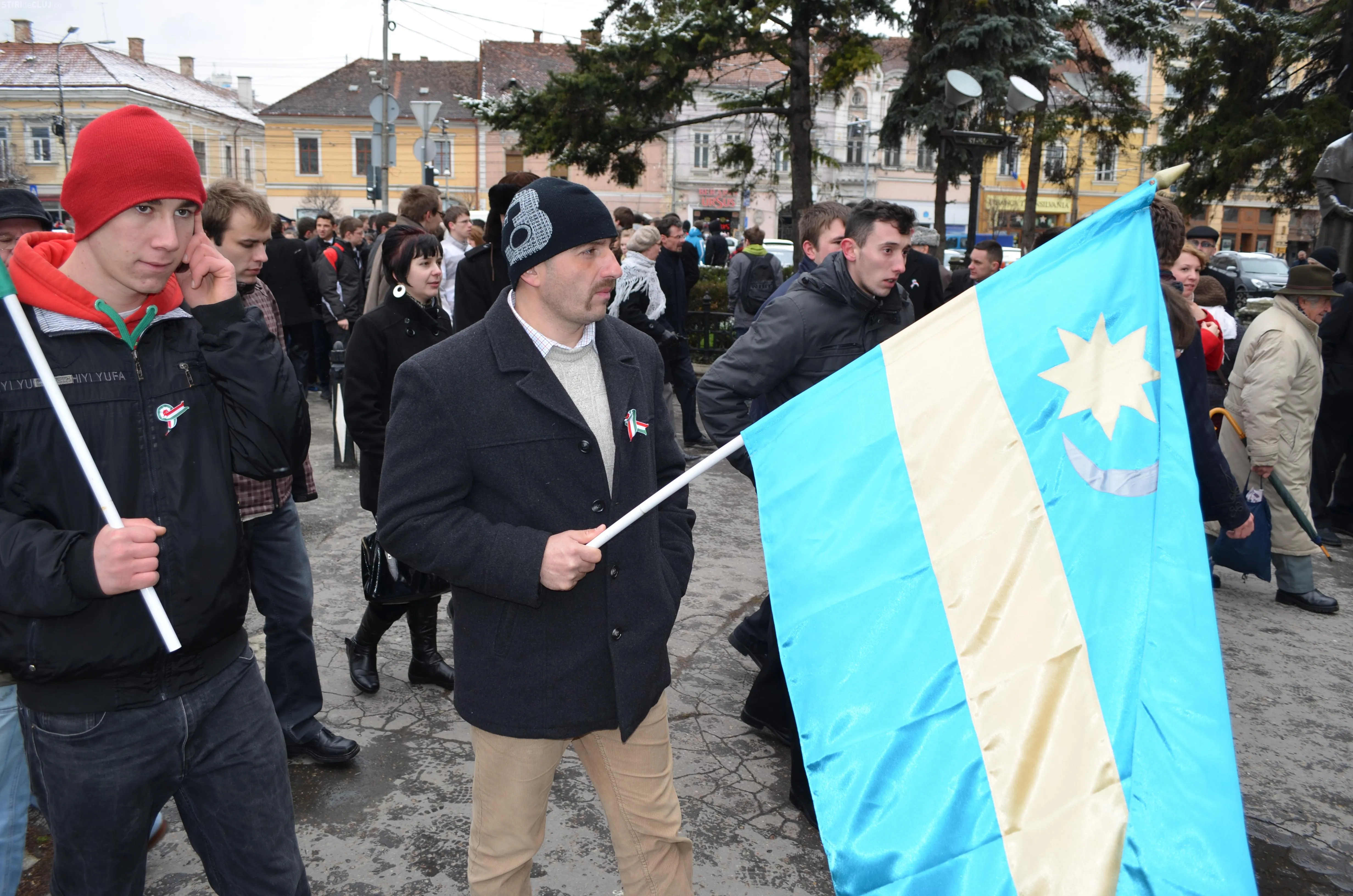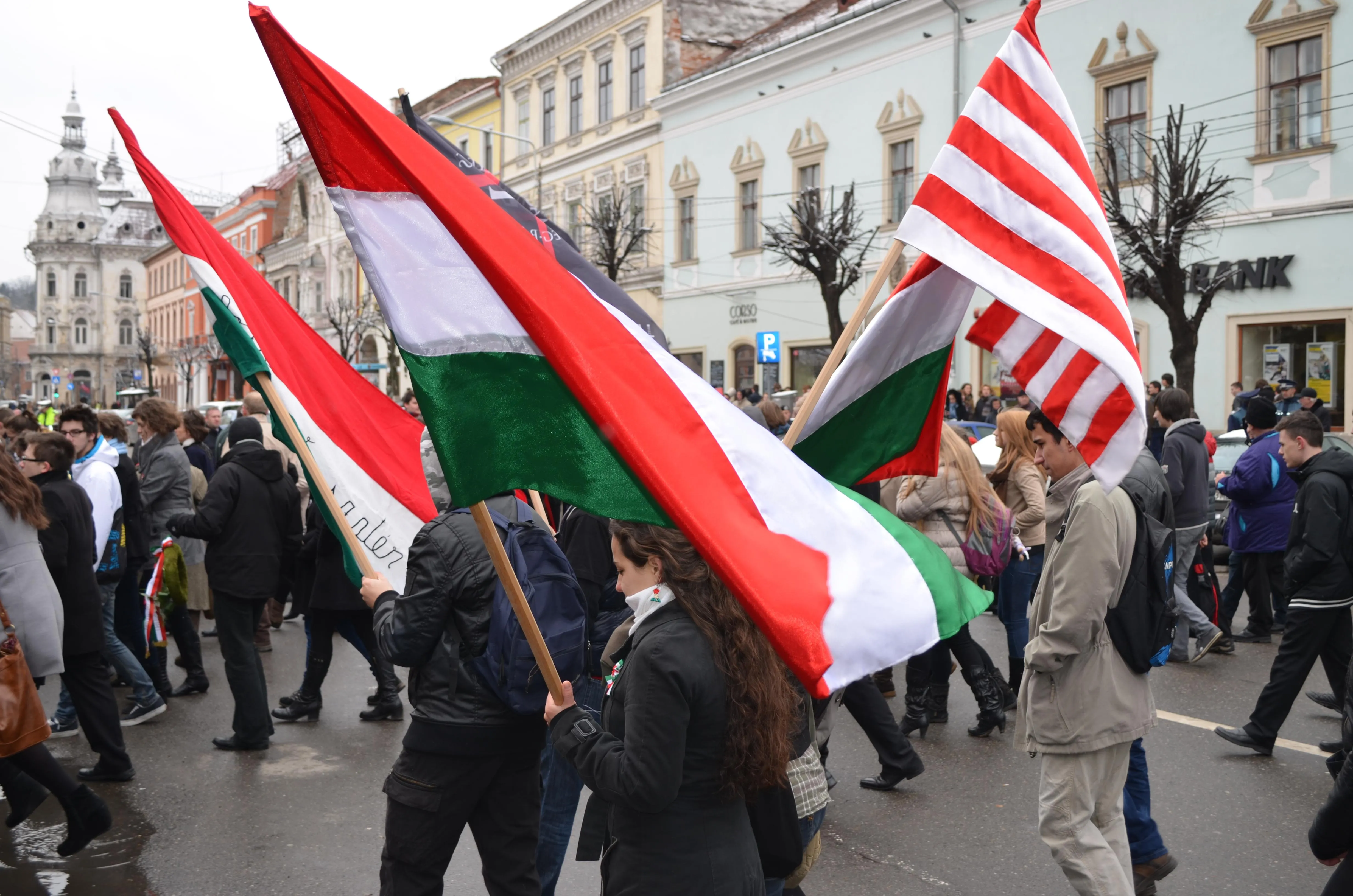 Ungurii din Cluj sărbătoresc Ziua Maghiarilor de Pretutindeni fluturând steagul Ținutului Secuiesc - FOTO