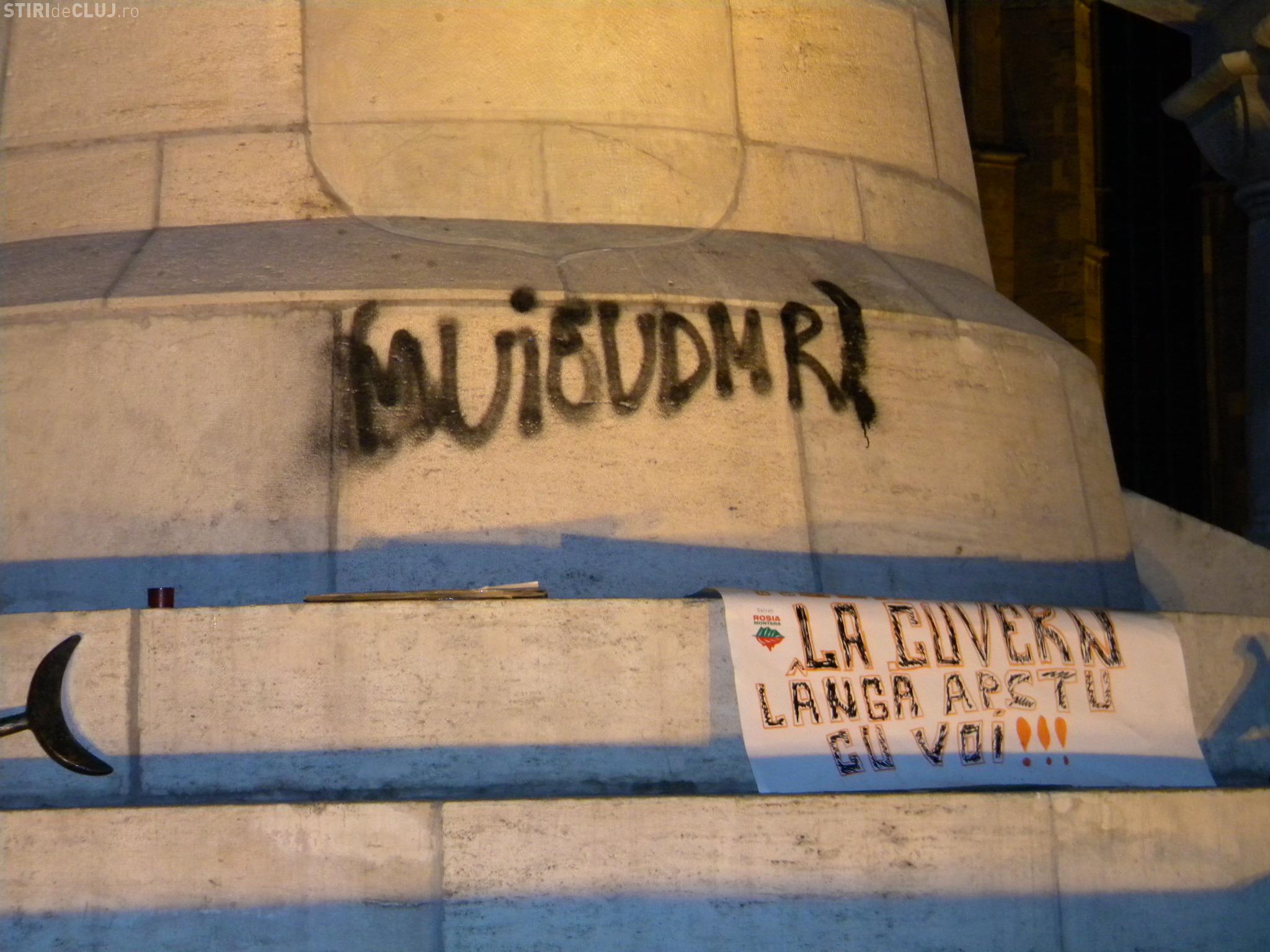 Manifestarea vine dupa ce marti seara, in jurul orei 21.20, un grup de suporteri ai echipei U Cluj au scris cu un spray "M..e UDMR!" pe soclul statuii matei Corvin.