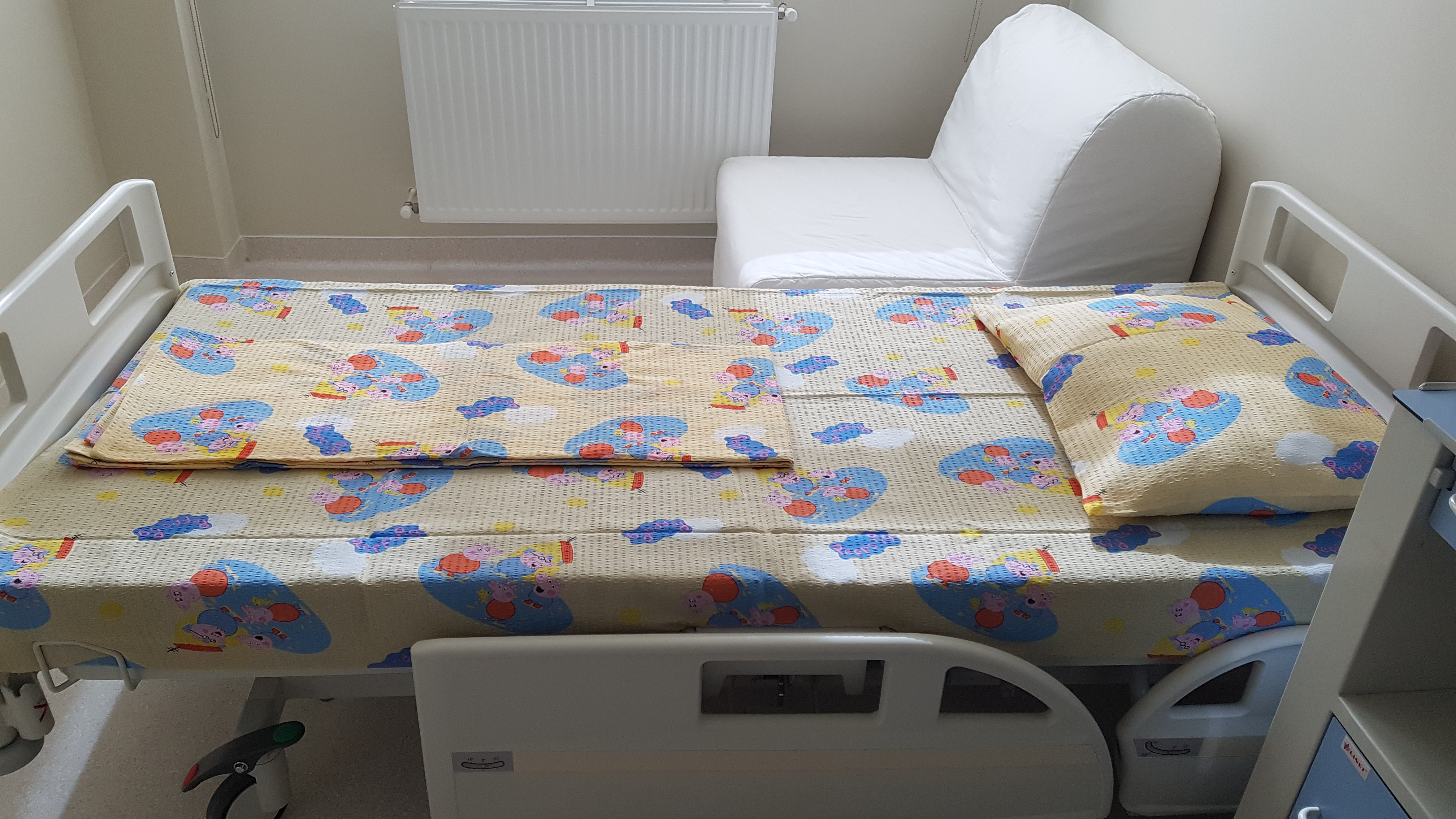 Camerele sunt prevăzute fiecare cu un pat pentru un singur pacient, dar copiii au nevoie să fie însoțiți de mamele lor pe parcursul tratamentului, astfel că există în dotare canapele speciale pentru mame.