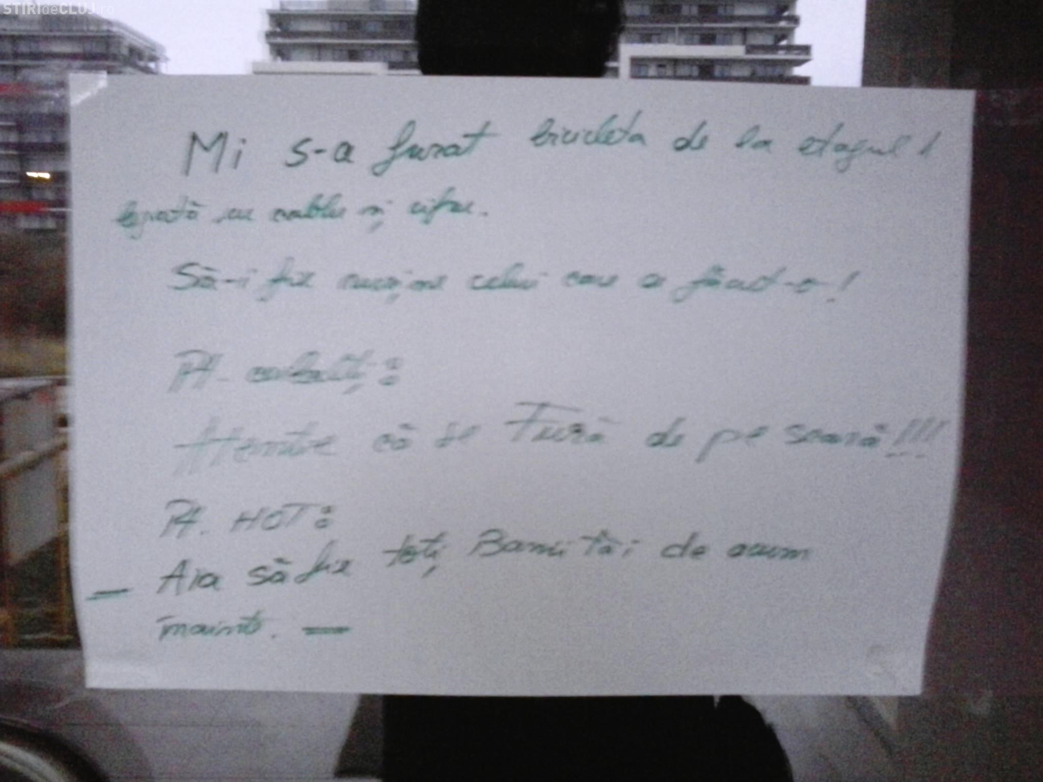 Unui clujean din Bună Ziua i s-a furat bicicleta de pe casa scării. Cum l-a BLESTEMAT pe HOȚ - FOTO
