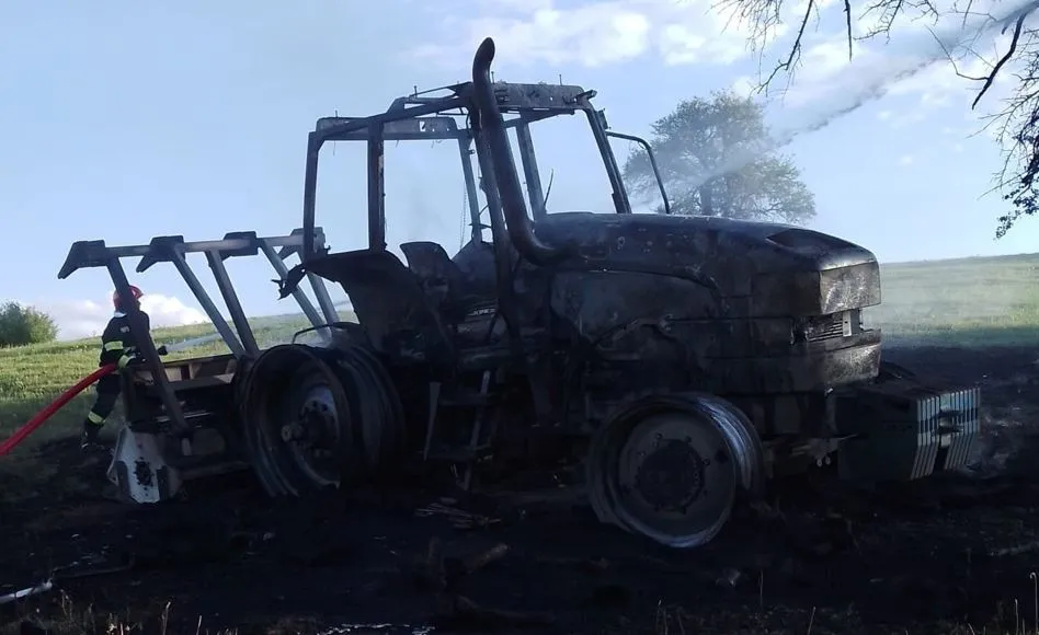 Unui clujean i-a luat foc tractorul în timp ce făcea lucrări pe câmp. Ce a cauzat incendiul care a distrus complet vehiculul FOTO
