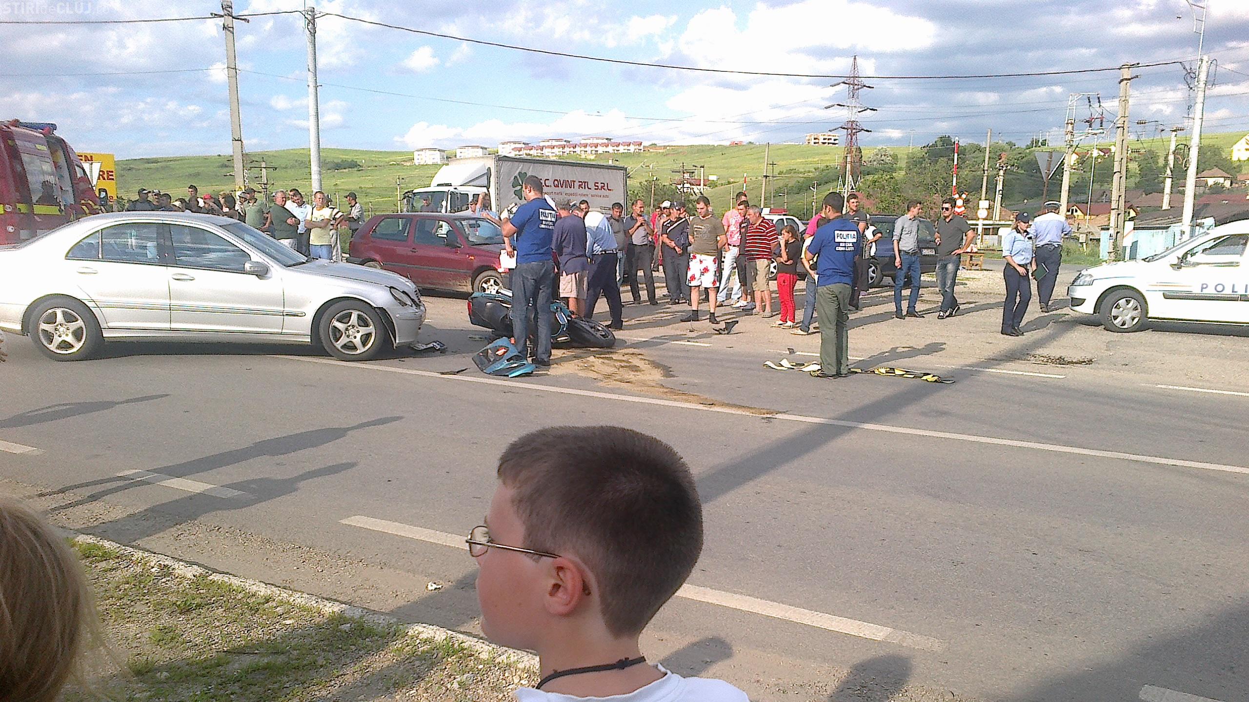 Motociclist facut praf de un Mercedes FOTO - UPDATE