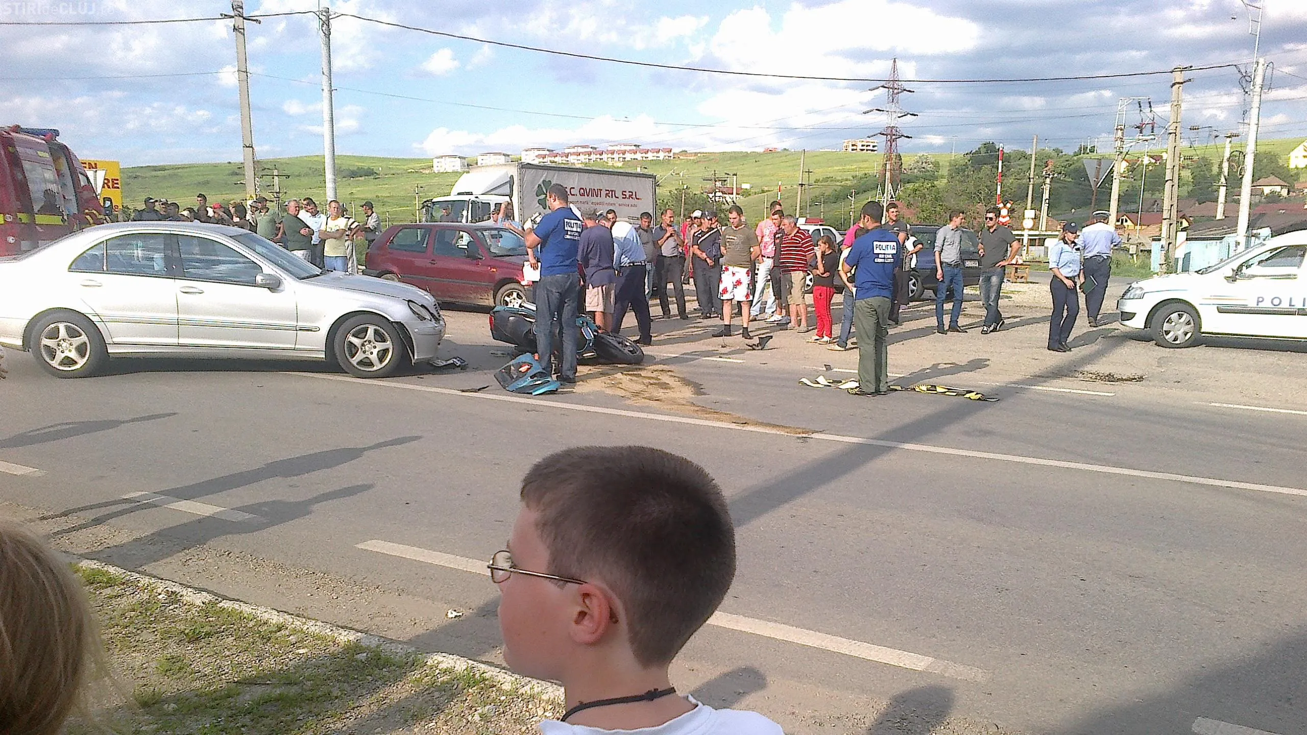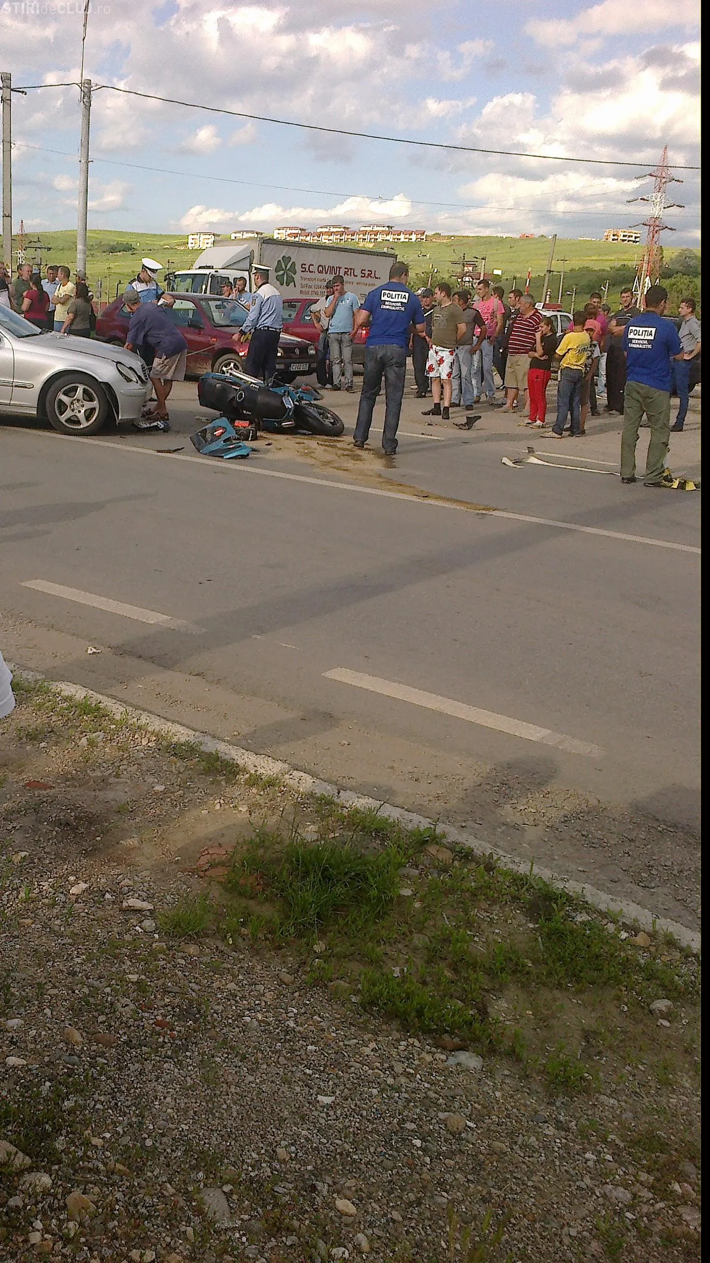 Un autoturism Mercedes a accidentat grav un motociclist. La fata locului au ajuns polistitii de la Postul Rural de Politie Apahida. Circulatia in zona se desfasoara cu greutate.