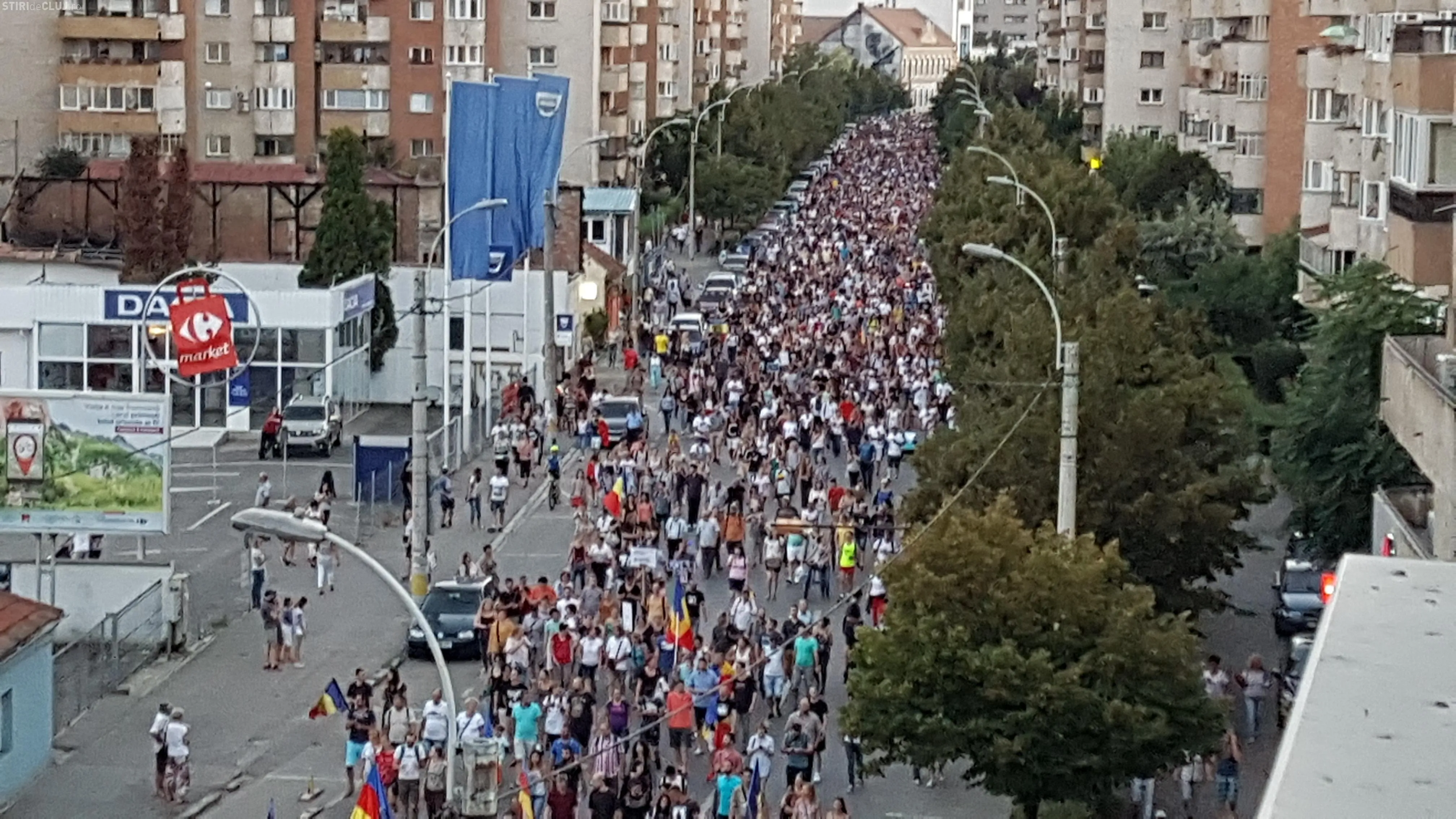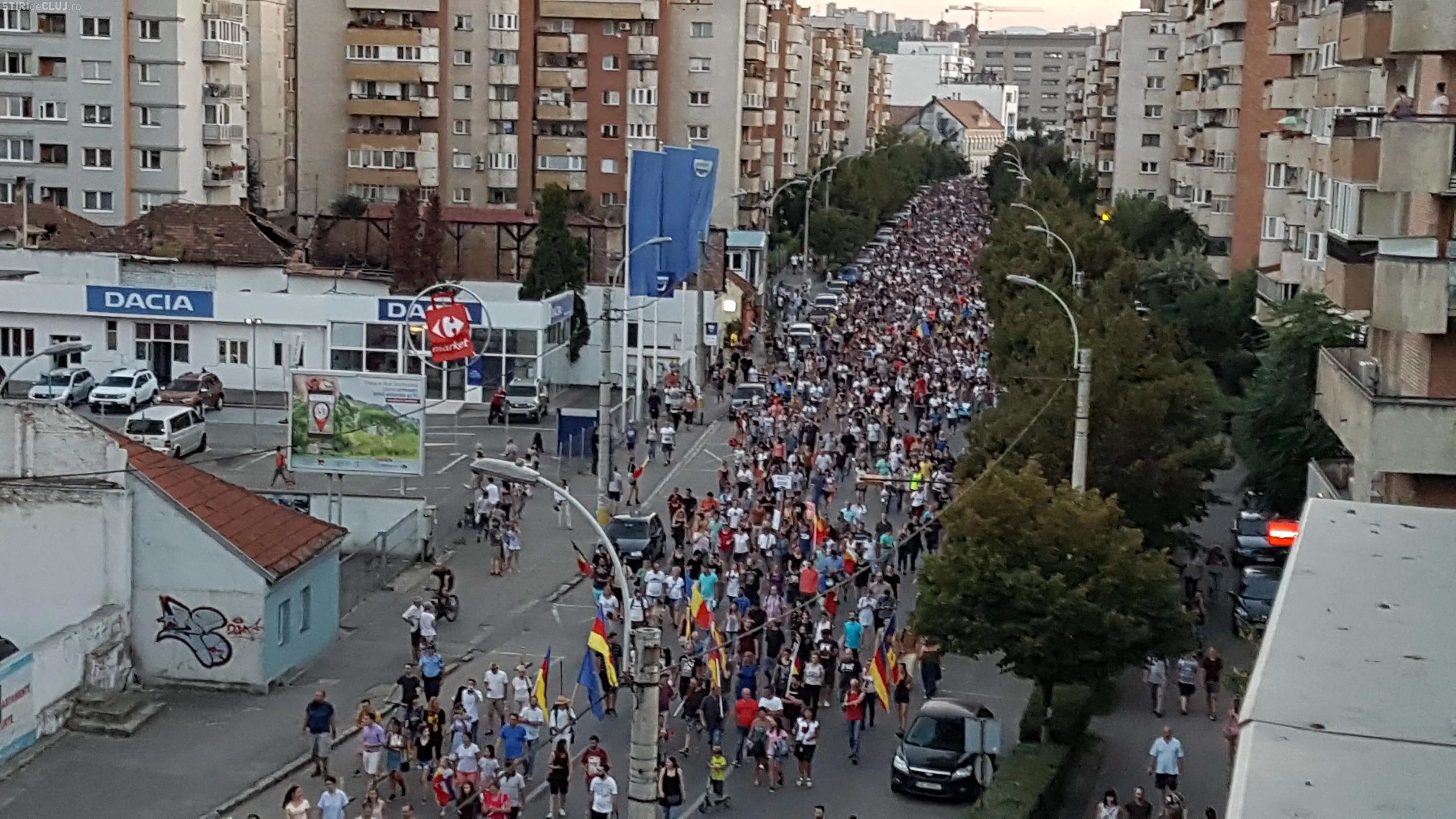 Organizatorii marșului susțin că, potrivit numărătorilor lor, sunt cel puțin 20.000 de oameni. Protestatarii au ajuns în zona Liceului pentru Nevăzători și încă mai sunt oameni în Piața Unirii.