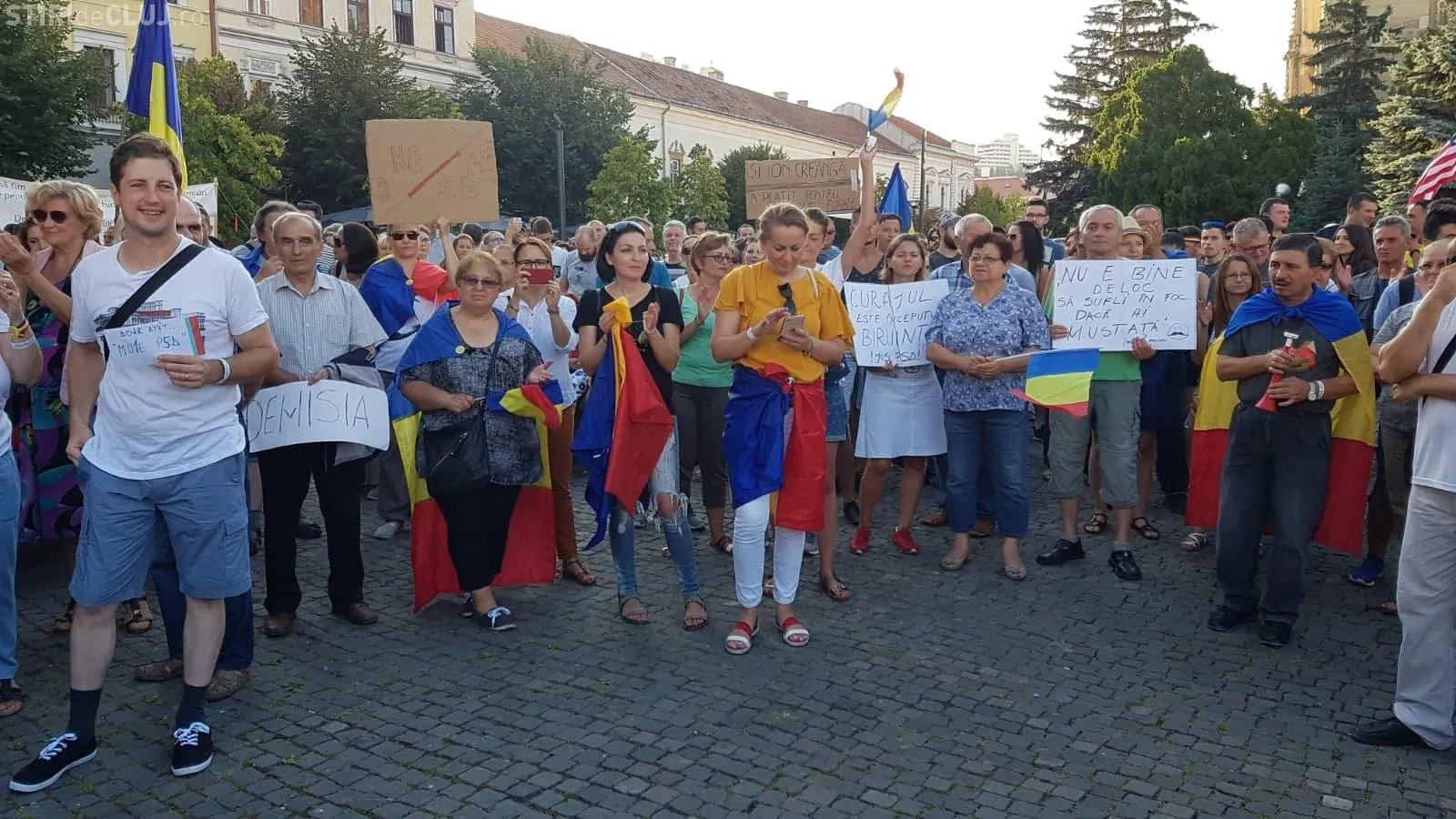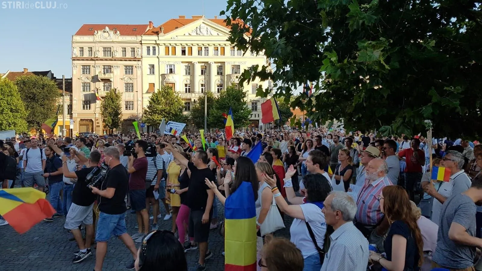 La puțin după ora 19.00, aproximativ 2.000 de persoane s-au strâns deja în Piața Unirii din Cluj-Napoca. Protestatarii au venit ”înarmați” cu bannere și pancarte și scandează împotriva PSD.