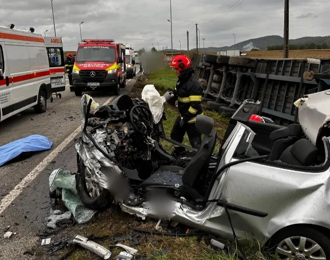 Doi tineri, fată și băiat, au murit într-un grav accident la Câțcău, județul Cluj – Impact devastator între un autoturism și un TIR