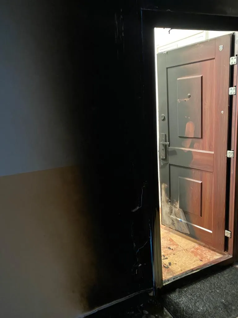Ușa unui apartament din Mănăștur incendiată în toiul nopții. O femeie rămăsese blocată înăuntru FOTO