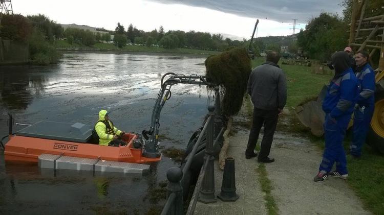 Utilajul amfibiu a început operațiunea de curățare a vegetației din râul Someş - FOTO