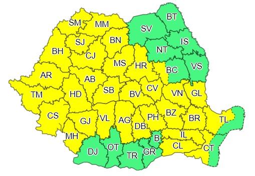 De asmenea, au fost emise două avertismente de tip cod galben, după cum urmează: