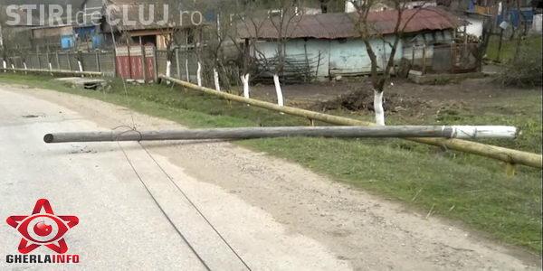 Vântul a făcut ravagii la Cluj. Mai mulți stâlpi de telecomunicații au fost dărâmați într-o localitate VIDEO