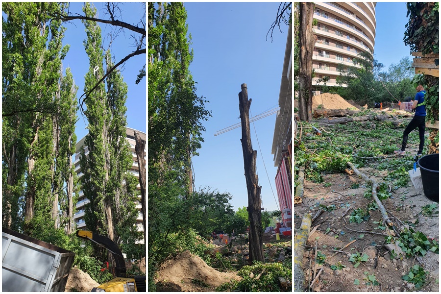 Miercuri dimineața, la ora 9.00, era deja tăiat un plop, iar alți nouă urmează la rând.