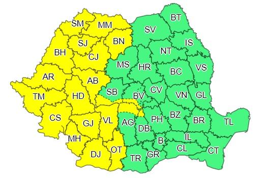 Meteorologii de la ANM au emis o nouă serie de avertismente de tip cod galben de precipitații, care vor afecta aproape toată țara.