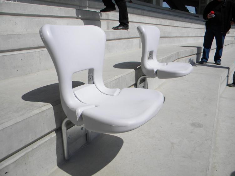 Un jurnalist clujean a testat rezistenta scaunelor montate pe stadionul Cluj Arena. Noile scaune sunt elastice pentru a fi confortabile, sustin reprezentantii firmei care le-a furnizat.