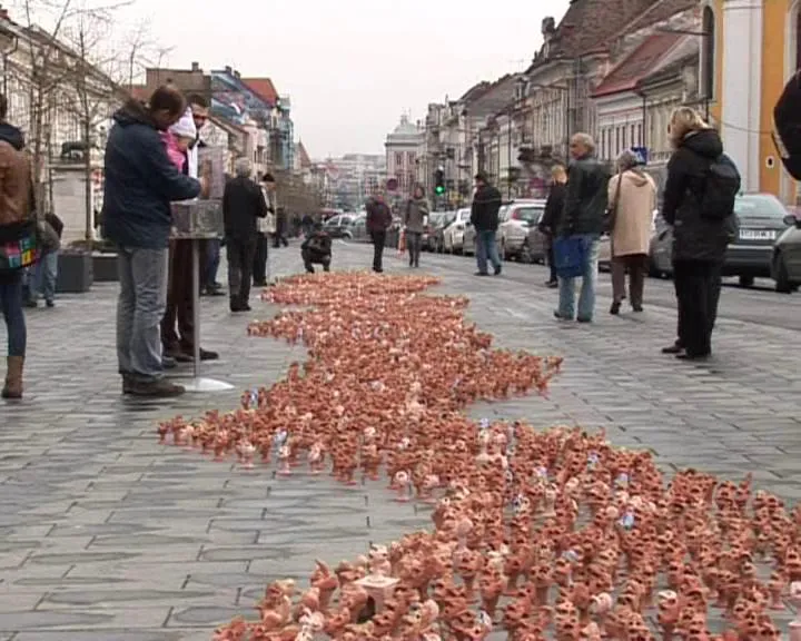 5.000 de figurine din ceramica au fost amplasate pe pietonala de pe Bulevardul Eroilor. "Corul inocentilor" este o expozitie itineranta, care isi poropune sa adune fonduri pentru copiii cu probleme.