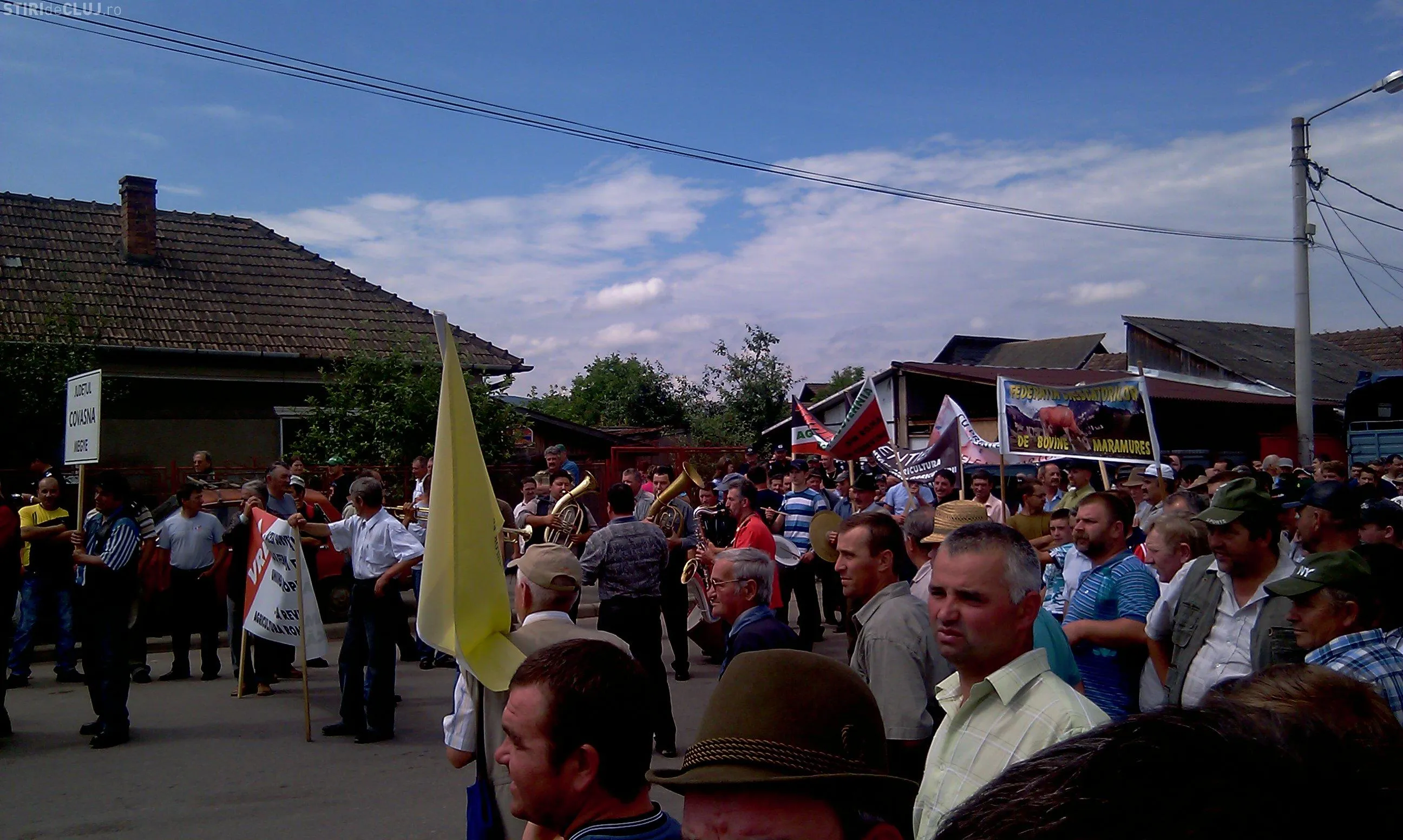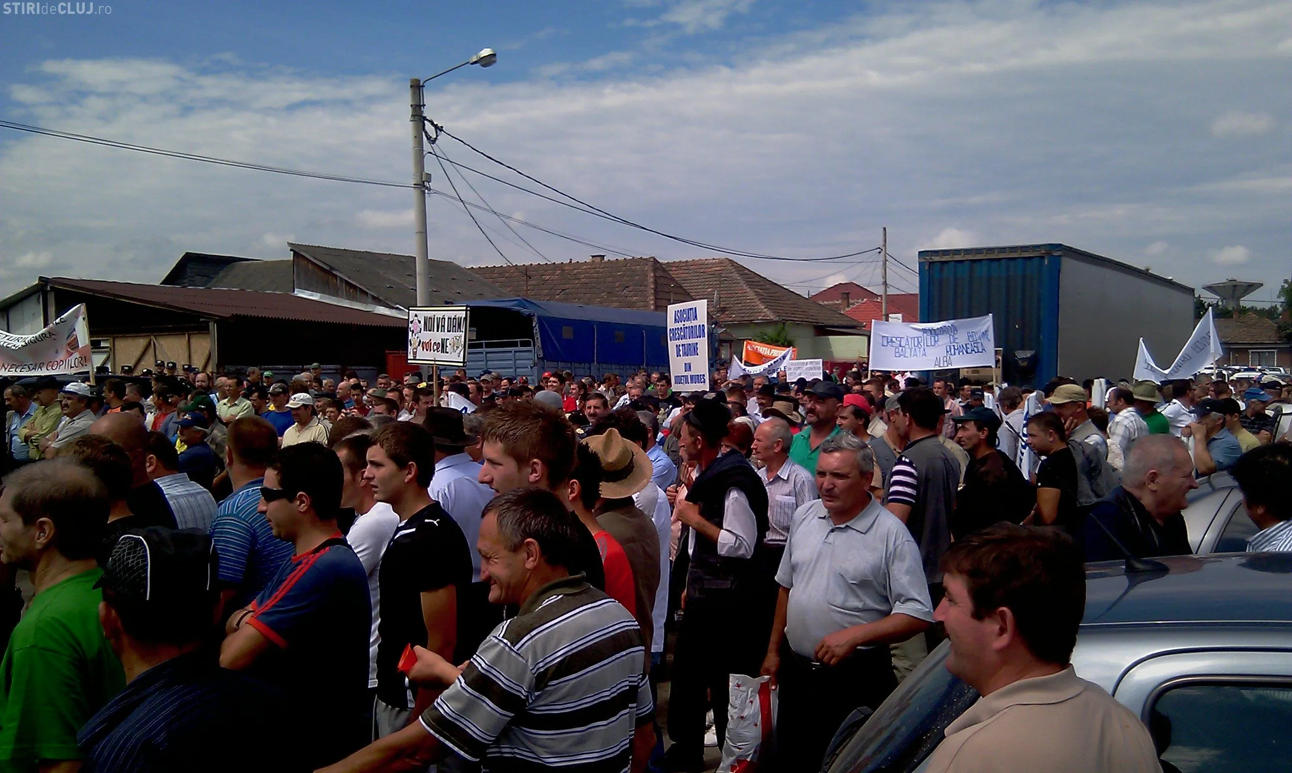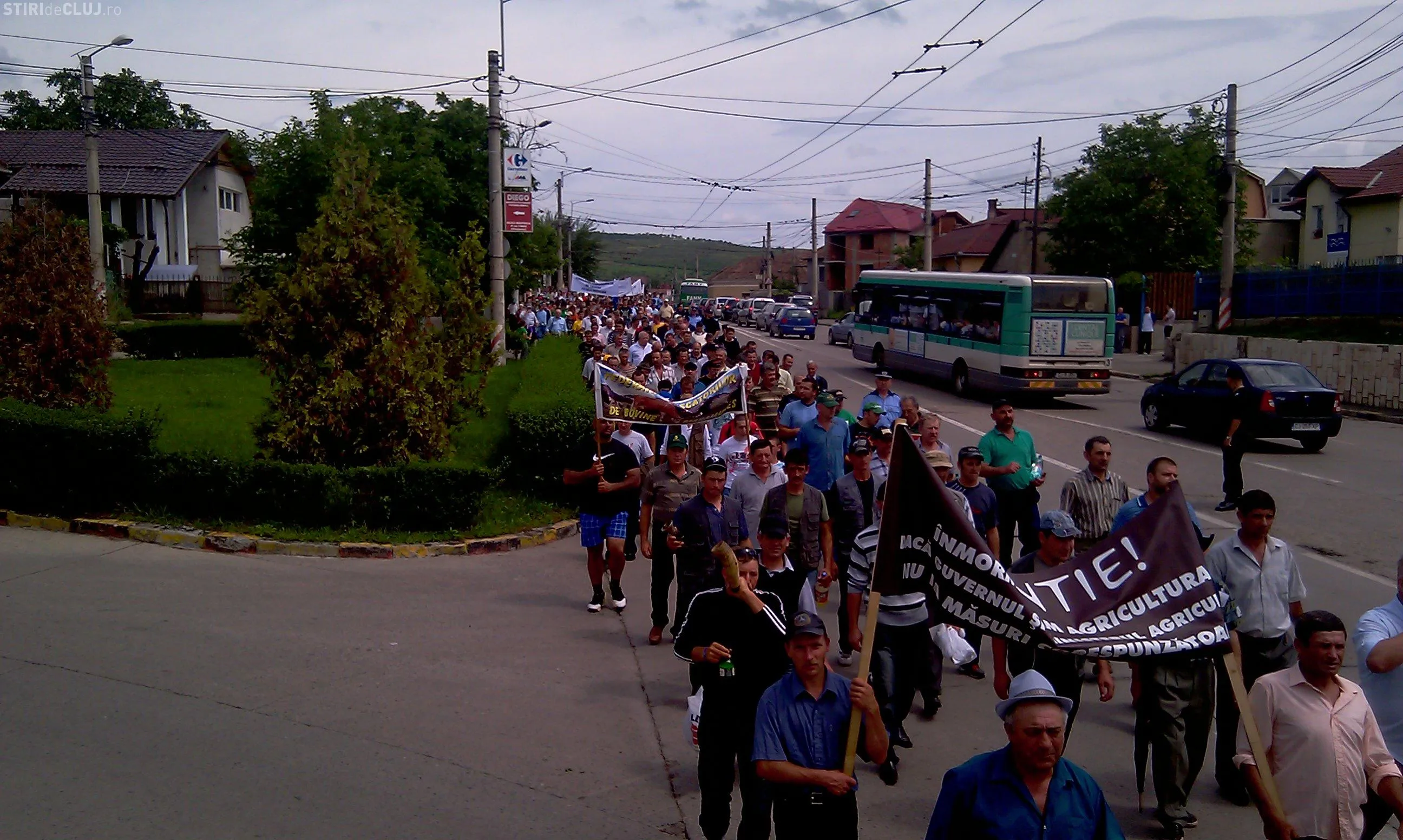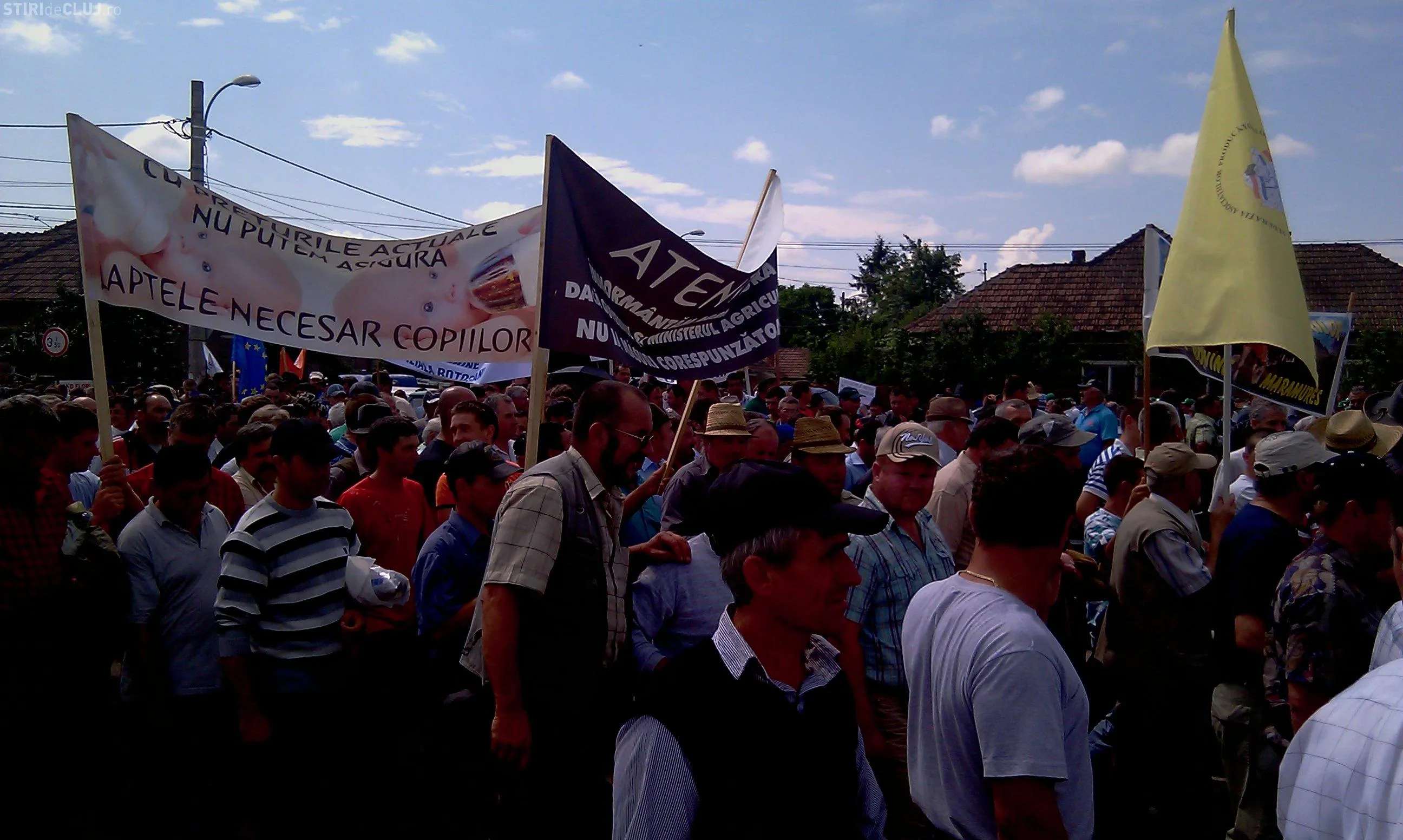 Aproximativ 1.500 de fermieri din Transilvania si Moldova protesteaza la Cluj-Napoca fata de neacordarea subventiei pe cap de vaca primita de Romania din partea Uniunii Europe.